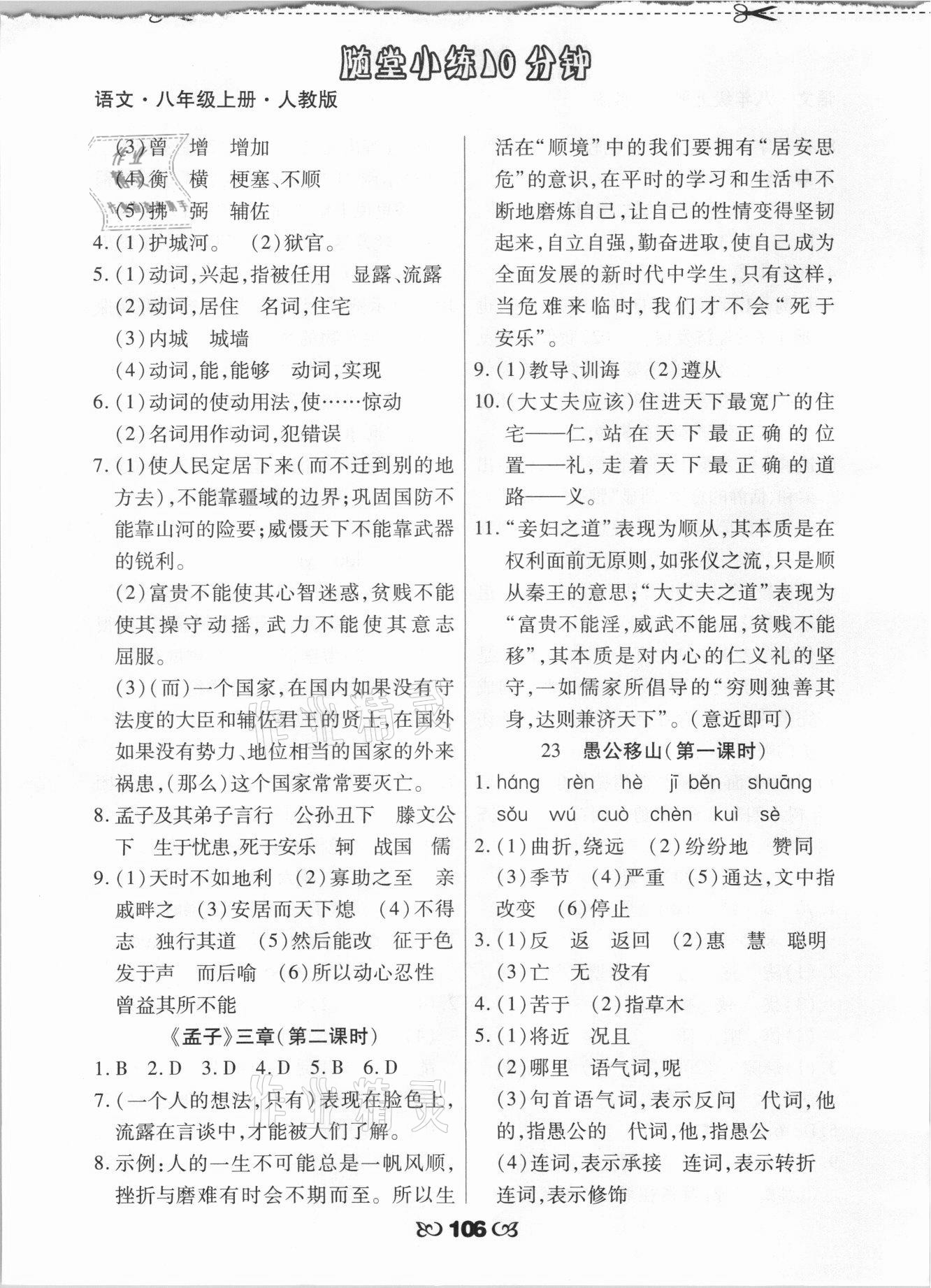 注:目前有些书本章节名称可能整理的还不是很完善,但都是按照顺序排列的,请同学们按照顺序仔细查找。练习册 2021年千里马随堂小练10分钟八年级语文上册人教版 答案主要是用来给同学们做完题方便对答案用的,请勿直接抄袭。