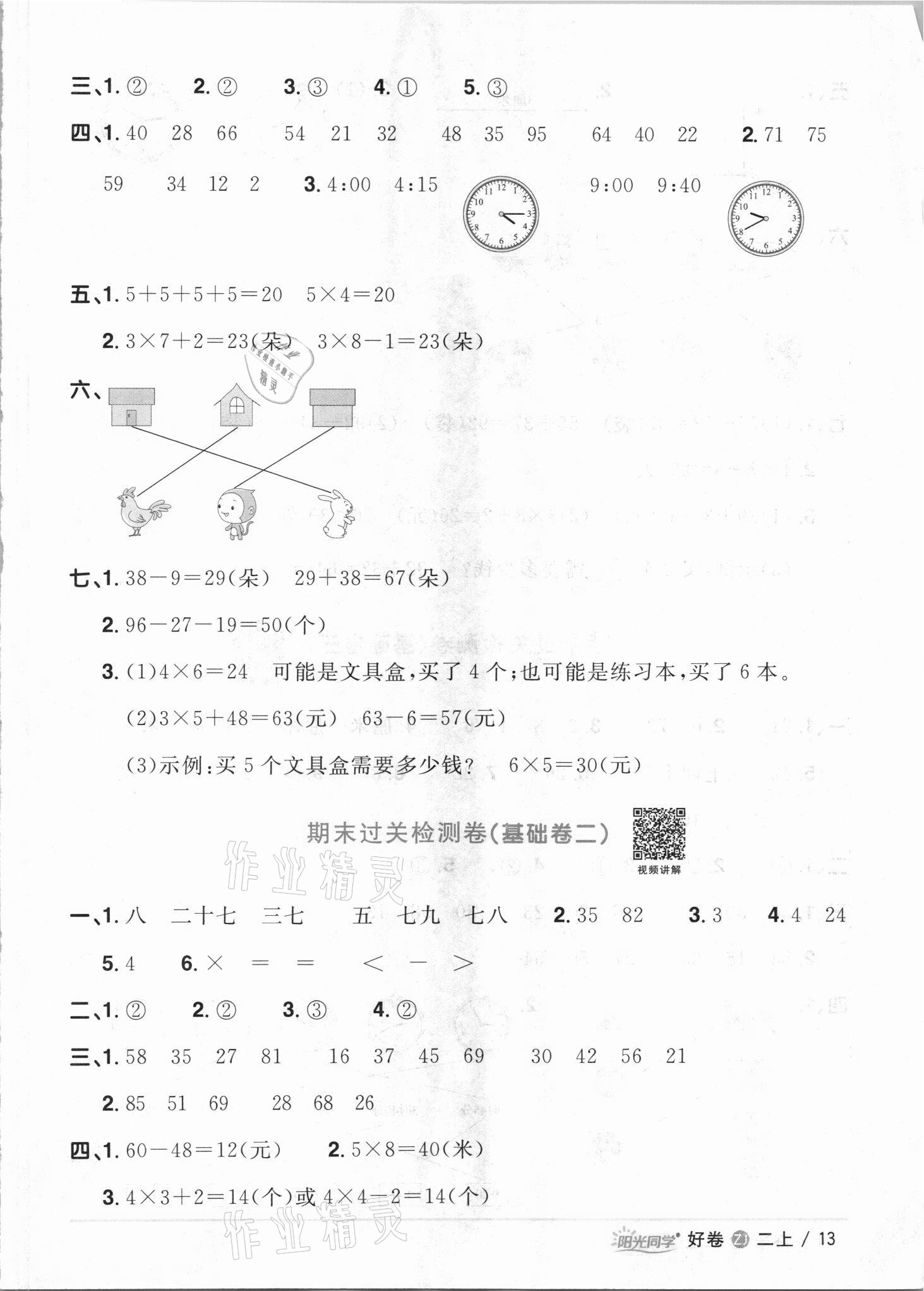 注:目前有些书本章节名称可能整理的还不是很完善,但都是按照顺序排列的,请同学们按照顺序仔细查找。练习册 2021年阳光同学全优达标好卷二年级数学上册人教版浙江专版 答案主要是用来给同学们做完题方便对答案用的,请勿直接抄袭。