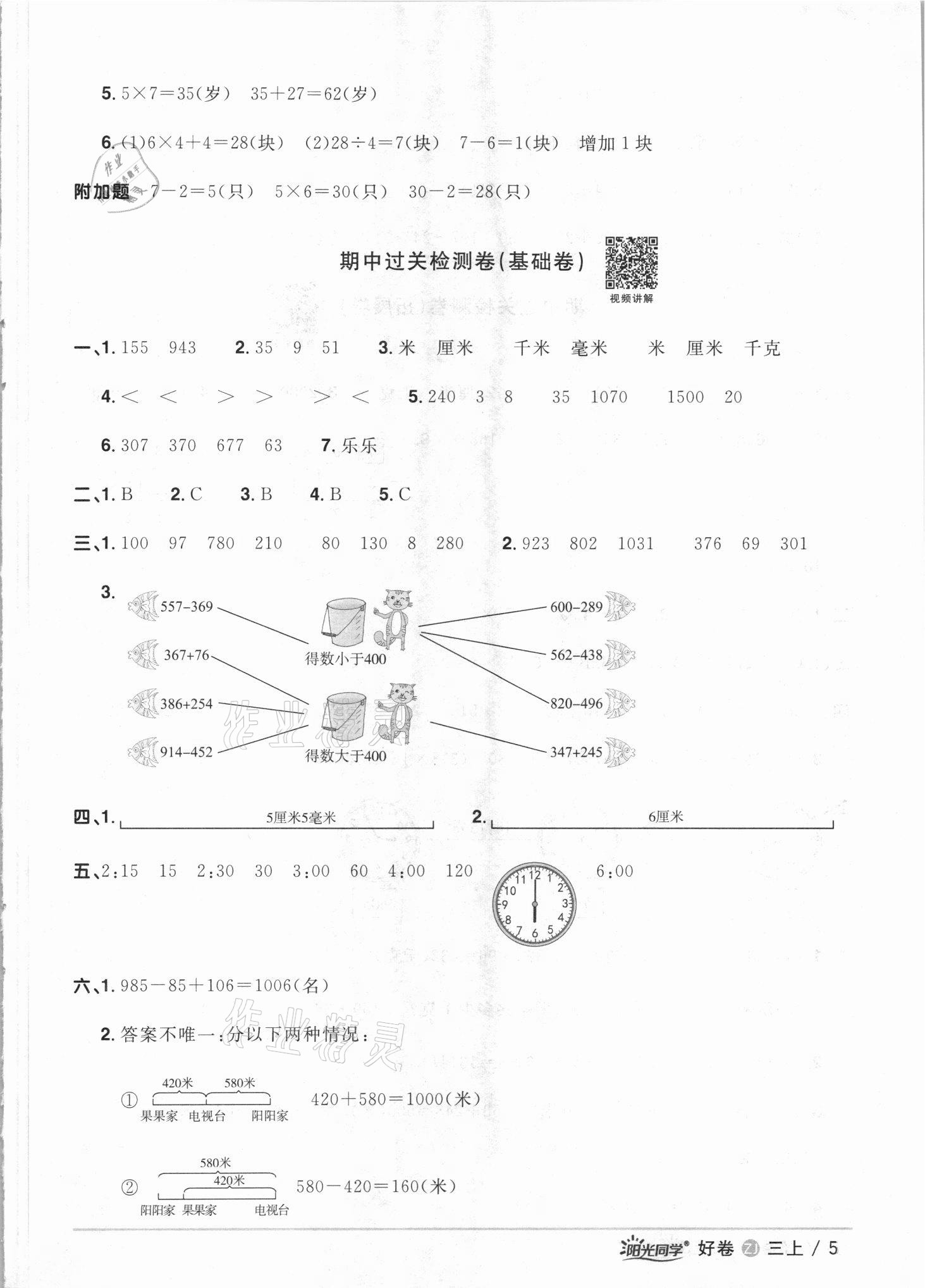 注:目前有些书本章节名称可能整理的还不是很完善,但都是按照顺序排列的,请同学们按照顺序仔细查找。练习册 2021年阳光同学全优达标好卷三年级数学上册人教版浙江专版 答案主要是用来给同学们做完题方便对答案用的,请勿直接抄袭。