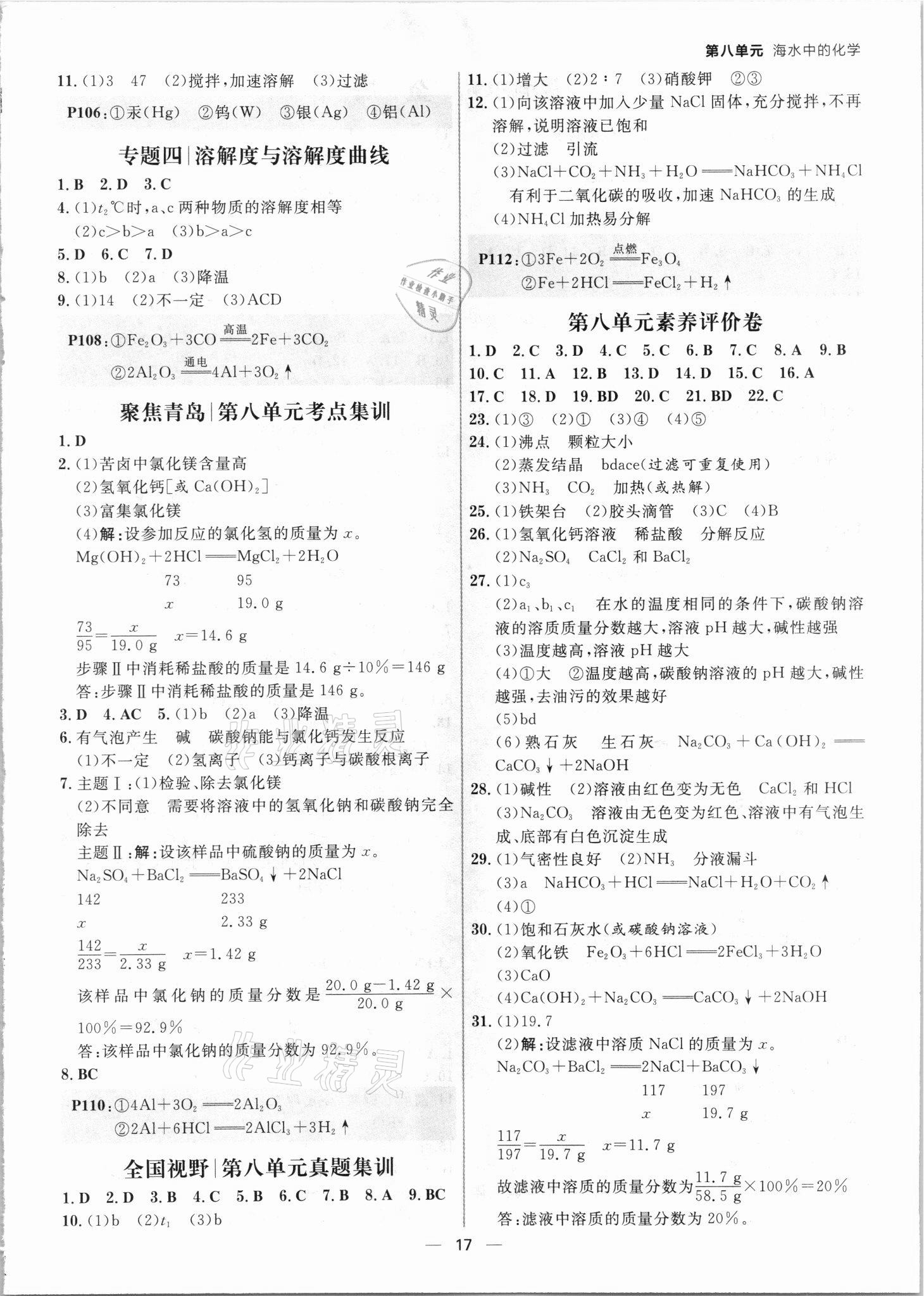 注:目前有些书本章节名称可能整理的还不是很完善,但都是按照顺序排列的,请同学们按照顺序仔细查找。练习册 2021年练出好成绩九年级化学人教版青岛专版 答案主要是用来给同学们做完题方便对答案用的,请勿直接抄袭。