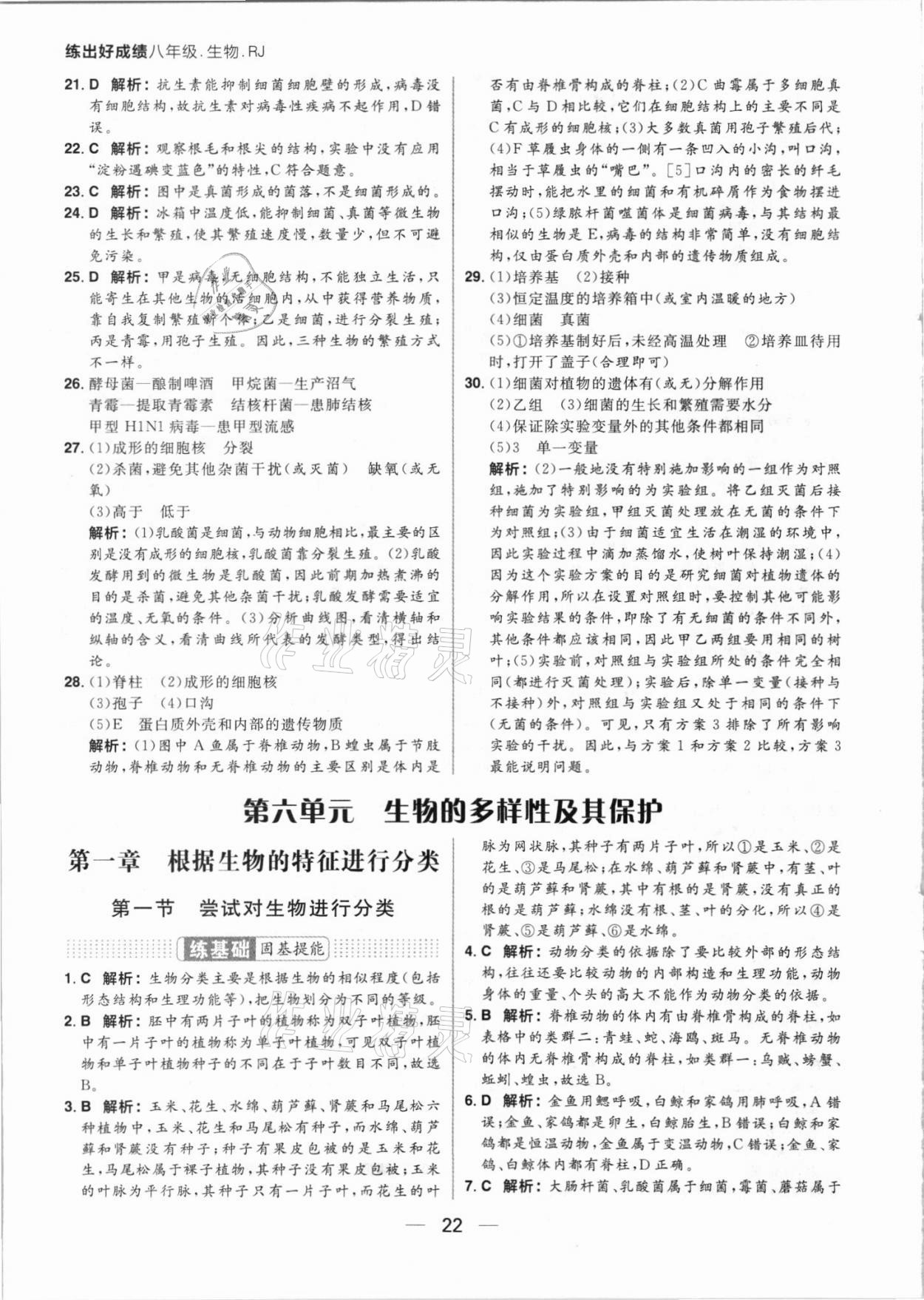 注:目前有些书本章节名称可能整理的还不是很完善,但都是按照顺序排列的,请同学们按照顺序仔细查找。练习册 2021年练出好成绩八年级生物上册人教版 答案主要是用来给同学们做完题方便对答案用的,请勿直接抄袭。