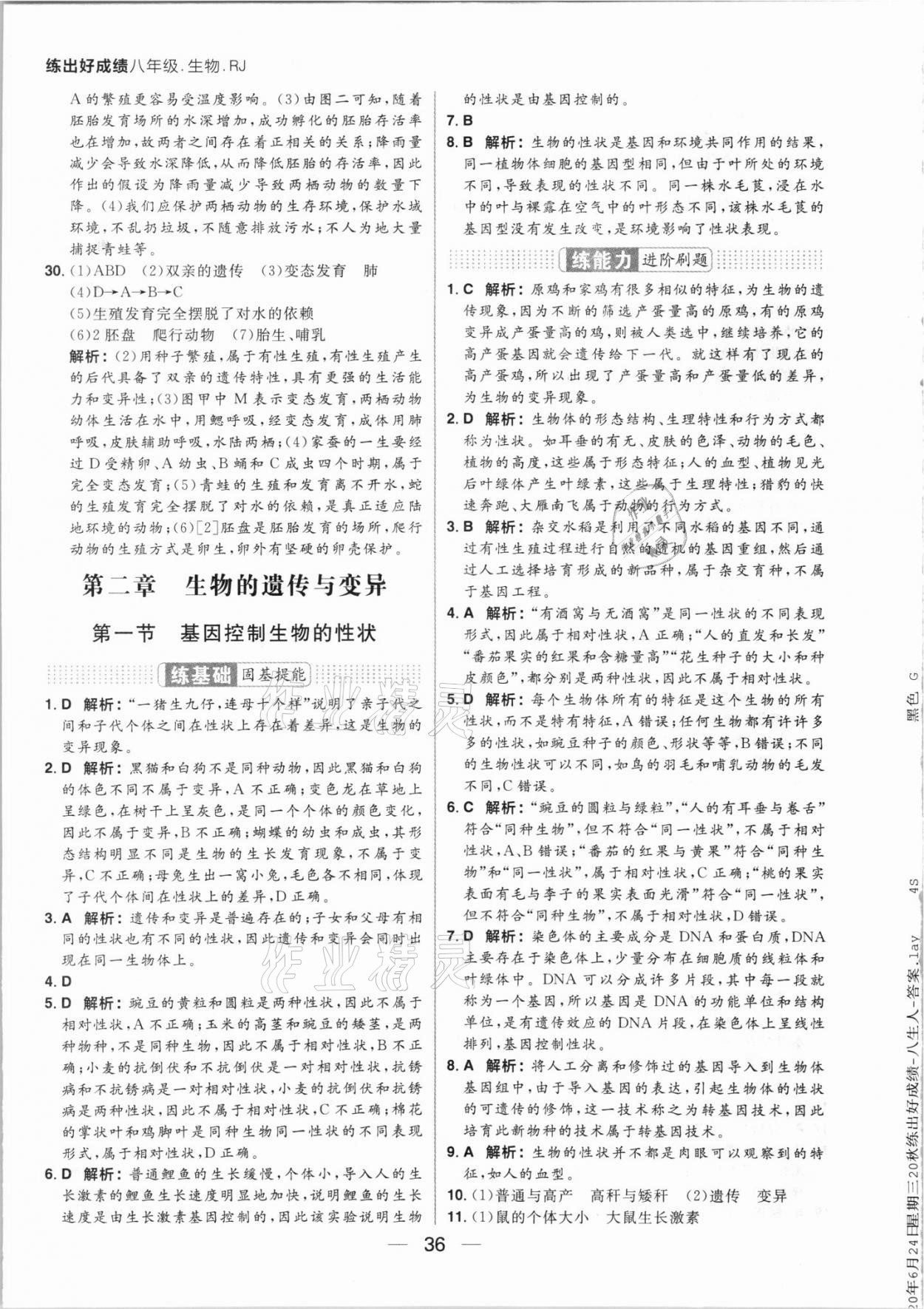 注:目前有些书本章节名称可能整理的还不是很完善,但都是按照顺序排列的,请同学们按照顺序仔细查找。练习册 2021年练出好成绩八年级生物上册人教版 答案主要是用来给同学们做完题方便对答案用的,请勿直接抄袭。