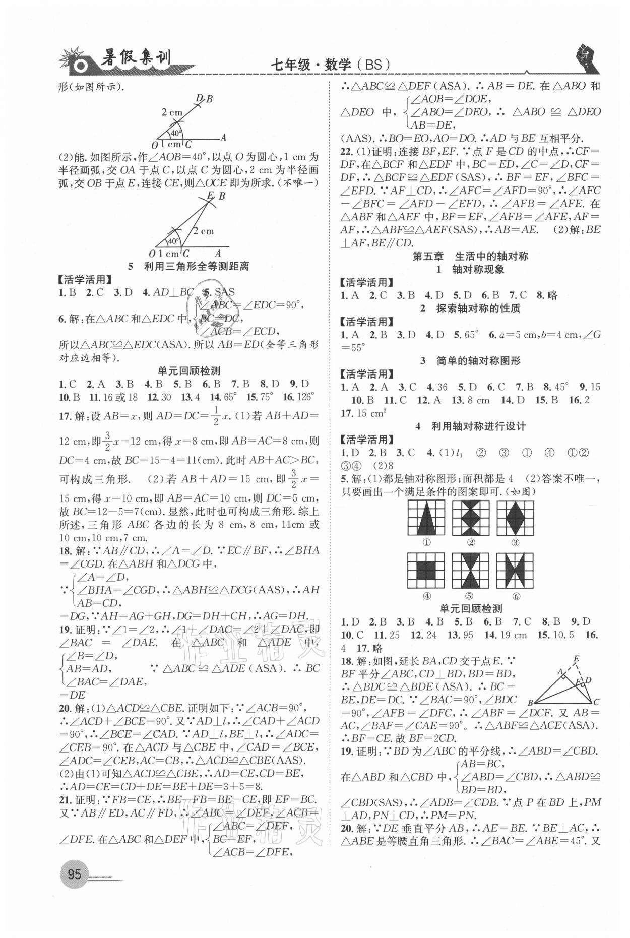2021年暑假集训七年级数学北师大版合肥工业大学出版社