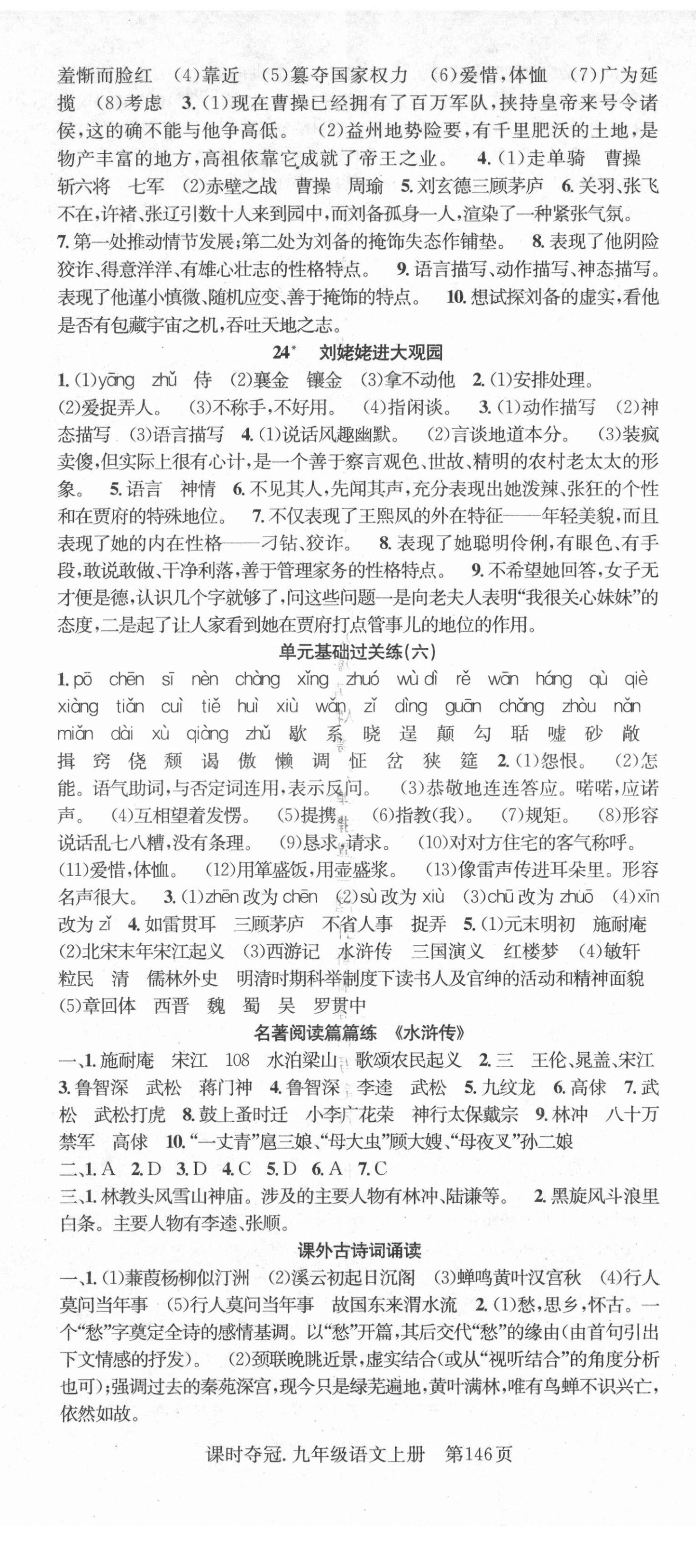 注:目前有些书本章节名称可能整理的还不是很完善,但都是按照顺序排列的,请同学们按照顺序仔细查找。练习册 2021年课时夺冠九年级语文上册人教版安徽专版 答案主要是用来给同学们做完题方便对答案用的,请勿直接抄袭。