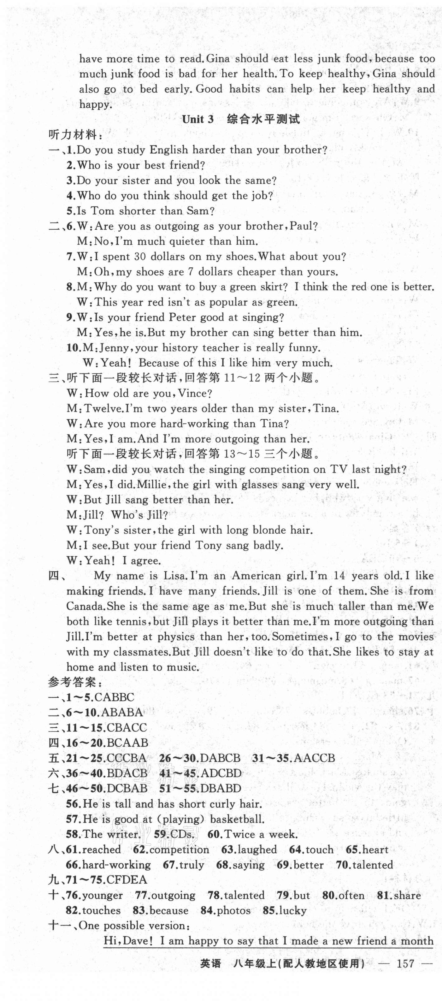 注:目前有些书本章节名称可能整理的还不是很完善,但都是按照顺序排列的,请同学们按照顺序仔细查找。练习册 2021年黄冈100分闯关八年级英语上册人教版 答案主要是用来给同学们做完题方便对答案用的,请勿直接抄袭。