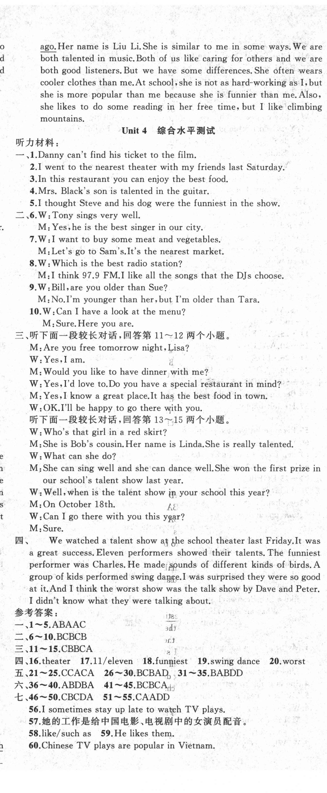 注:目前有些书本章节名称可能整理的还不是很完善,但都是按照顺序排列的,请同学们按照顺序仔细查找。练习册 2021年黄冈100分闯关八年级英语上册人教版 答案主要是用来给同学们做完题方便对答案用的,请勿直接抄袭。