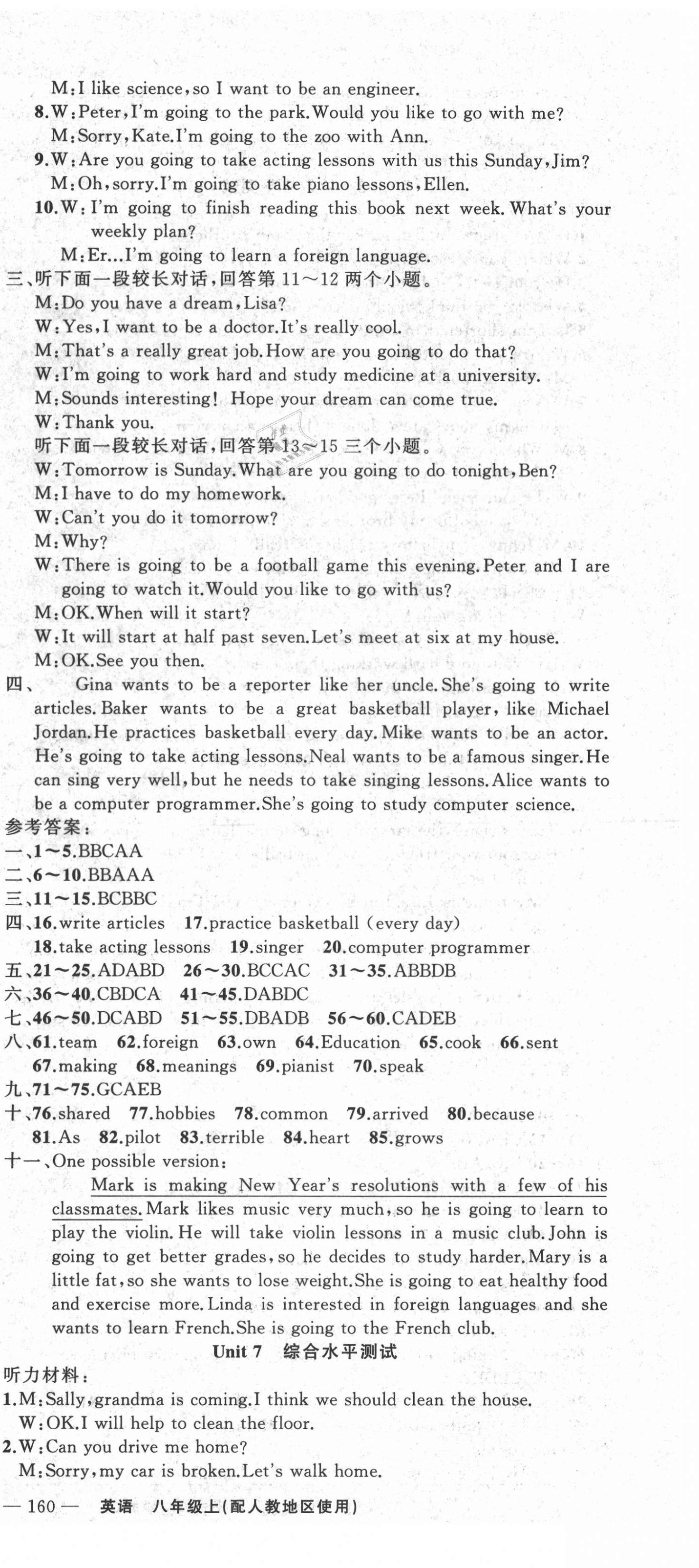 注:目前有些书本章节名称可能整理的还不是很完善,但都是按照顺序排列的,请同学们按照顺序仔细查找。练习册 2021年黄冈100分闯关八年级英语上册人教版 答案主要是用来给同学们做完题方便对答案用的,请勿直接抄袭。