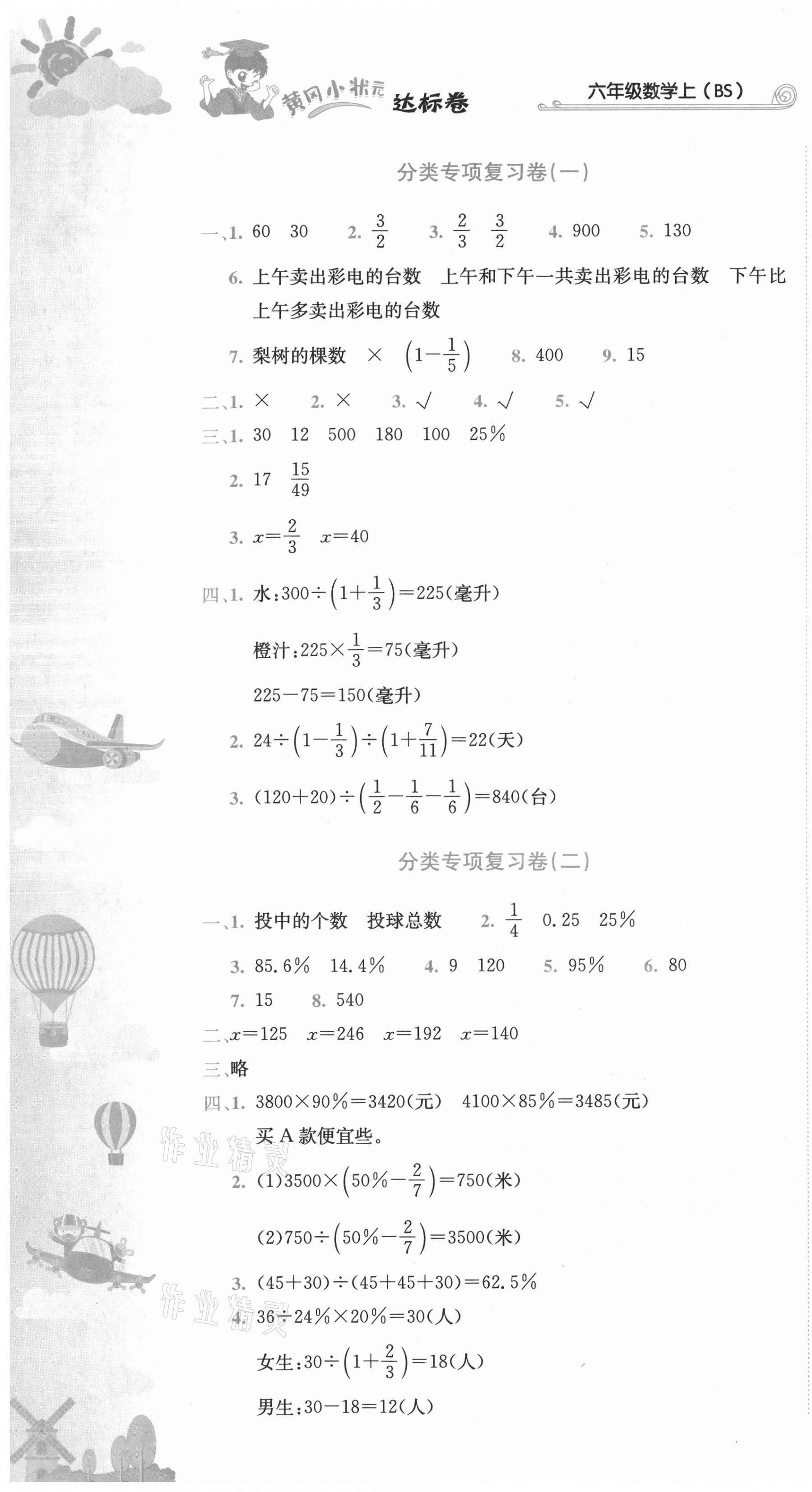 2021年黄冈小状元达标卷六年级数学上册北师大版