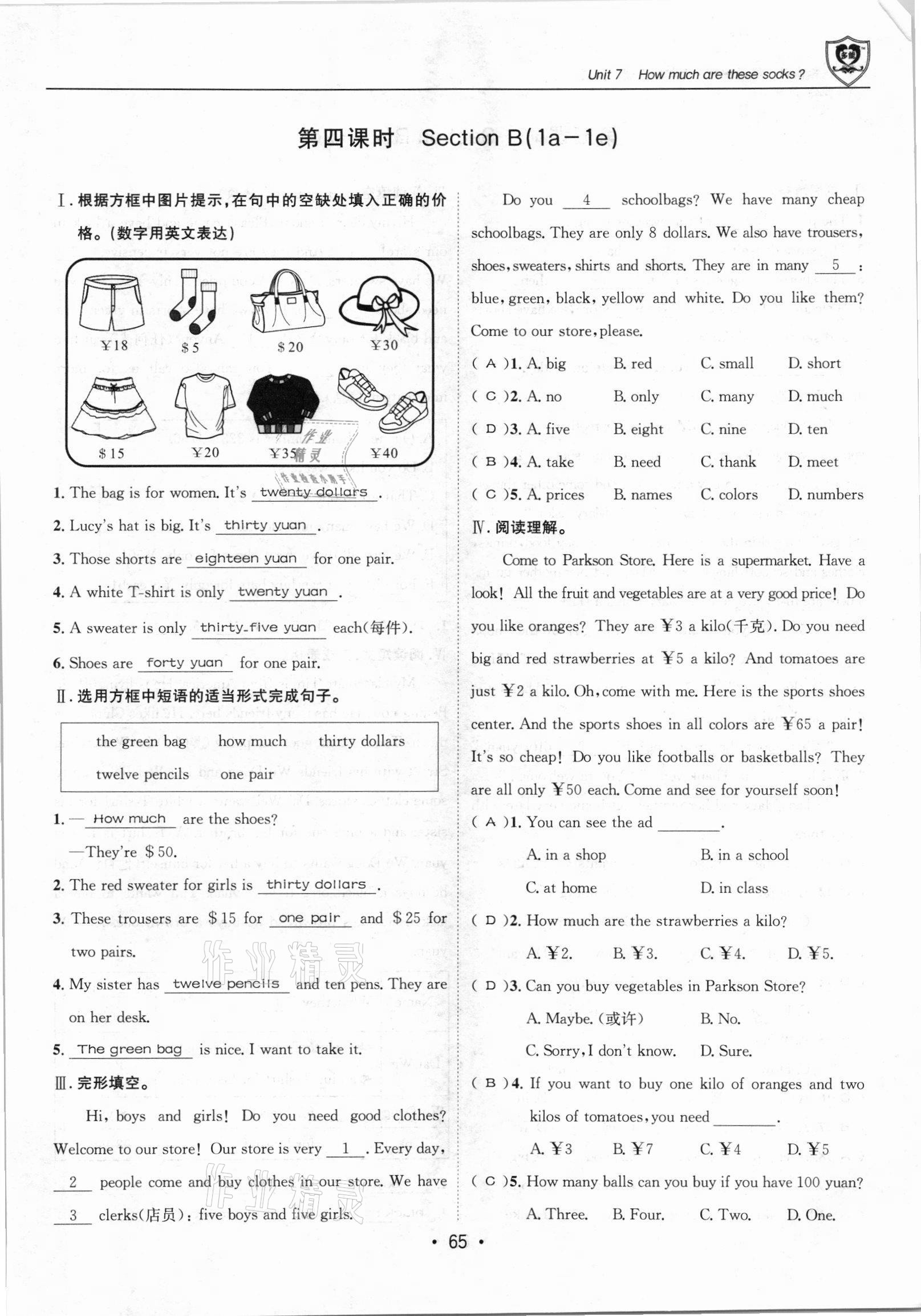 - 参考答案第65页