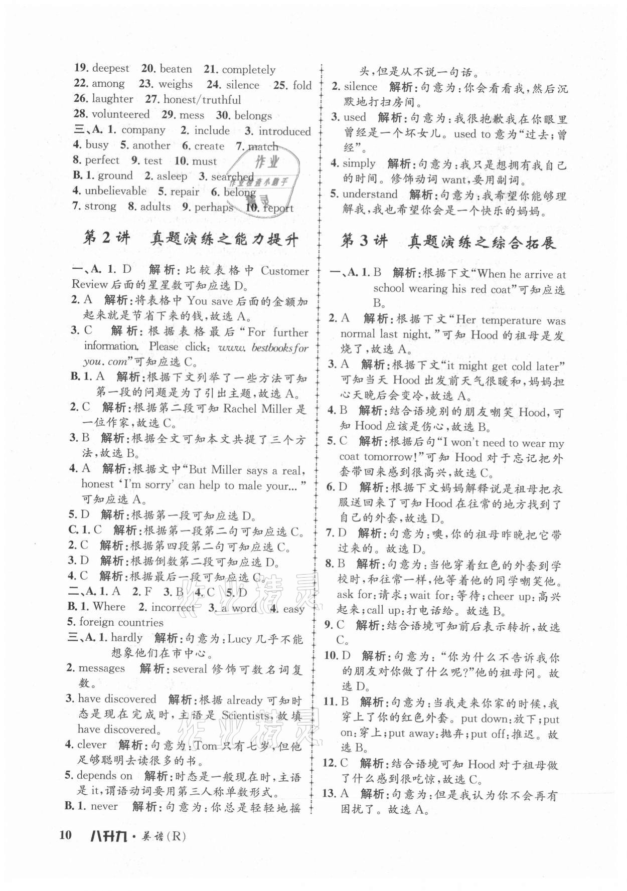 注:目前有些书本章节名称可能整理的还不是很完善,但都是按照顺序排列的,请同学们按照顺序仔细查找。练习册 2021年孟建平暑假培训教材八升九英语人教版 答案主要是用来给同学们做完题方便对答案用的,请勿直接抄袭。
