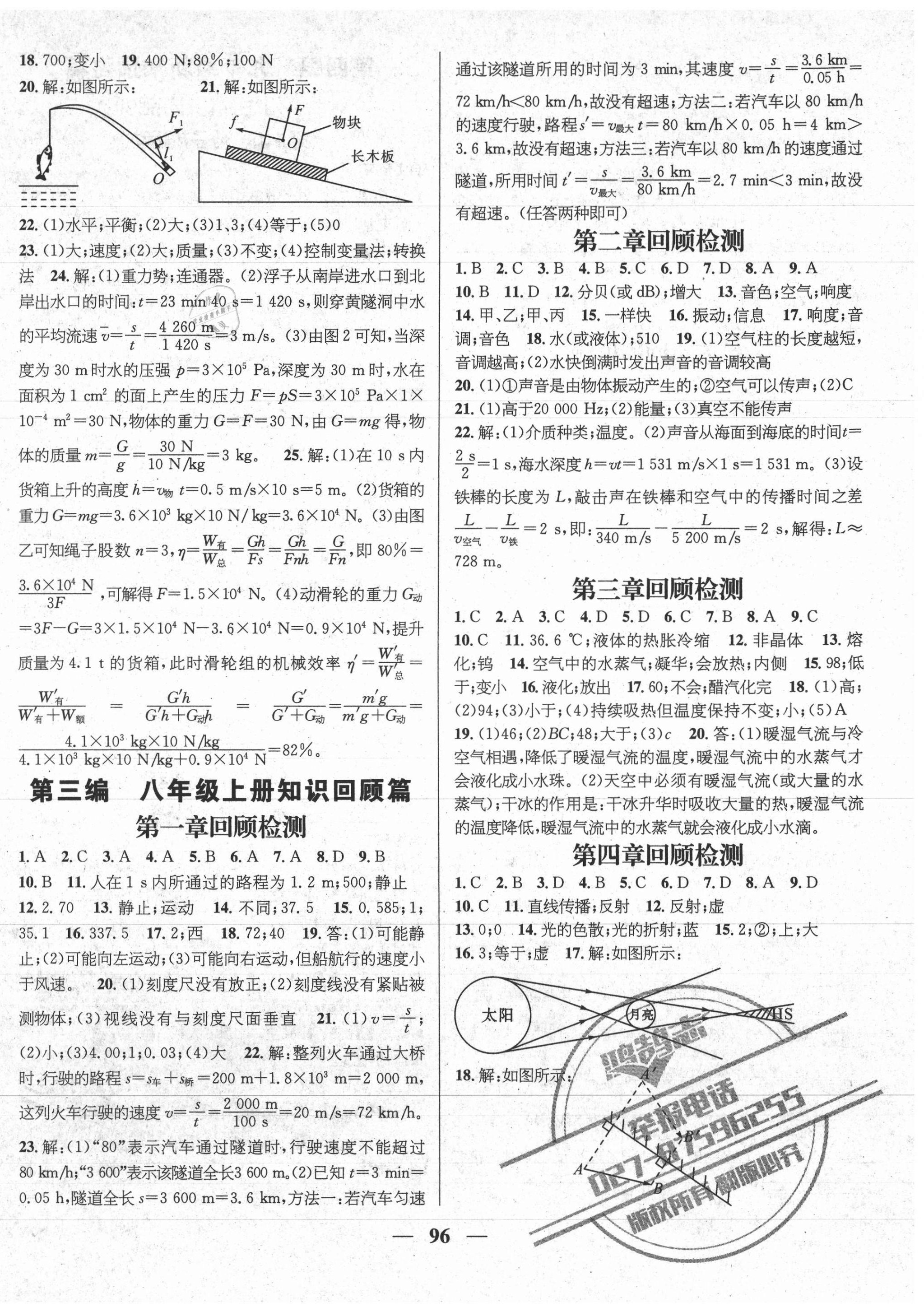 2021年鸿鹄志文化期末冲刺王暑假作业八年级物理人教版