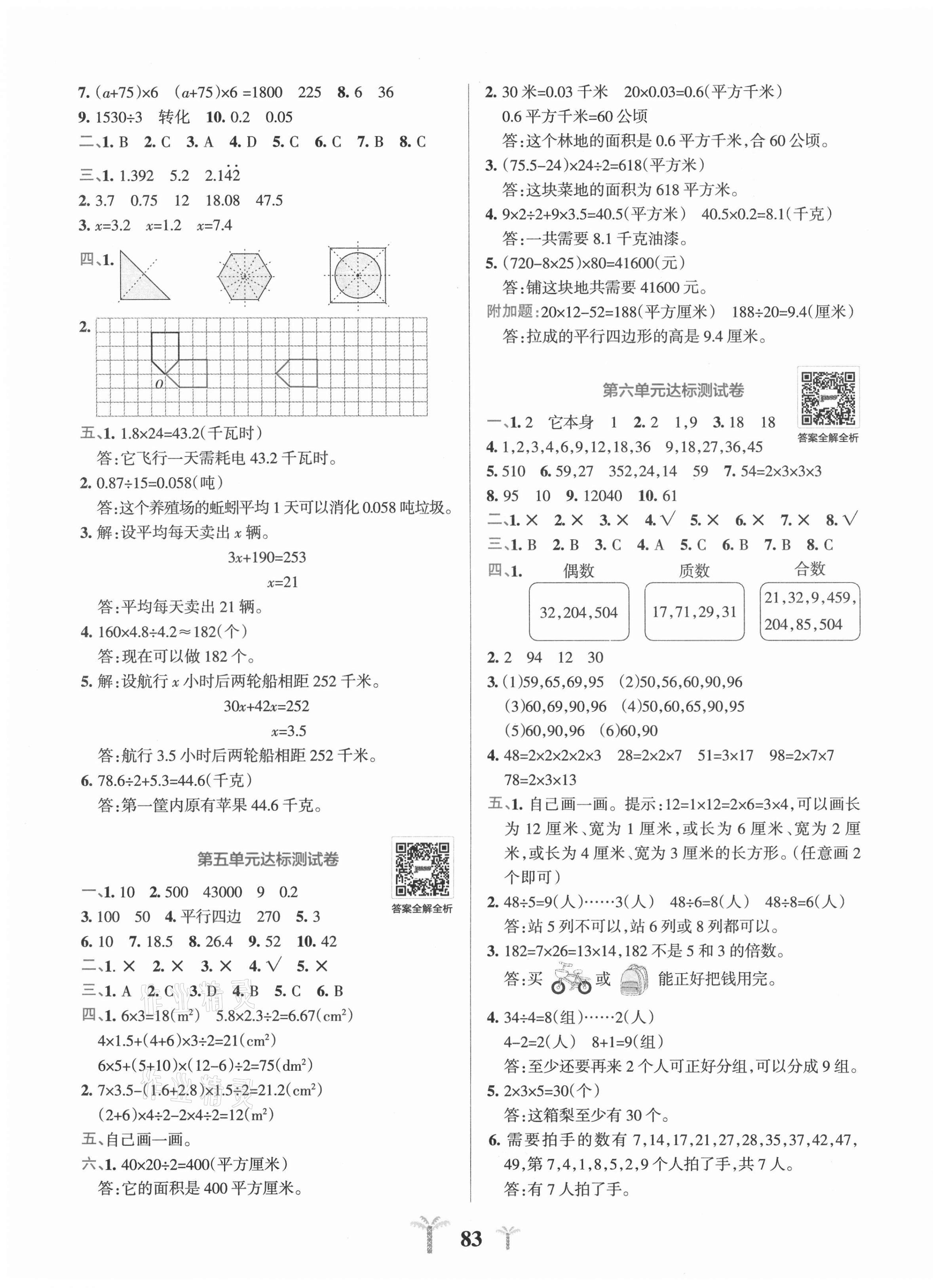 2021年小学学霸冲A卷五年级数学上册青岛版