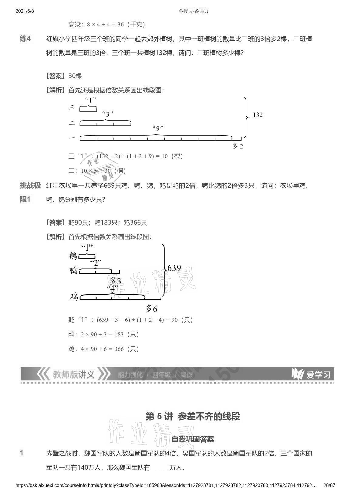 注:目前有些书本章节名称可能整理的还不是很完善,但都是按照顺序排列的,请同学们按照顺序仔细查找。练习册 2021年爱学习数学能力强化体系四年级苏教版首都师范大学出版社 答案主要是用来给同学们做完题方便对答案用的,请勿直接抄袭。