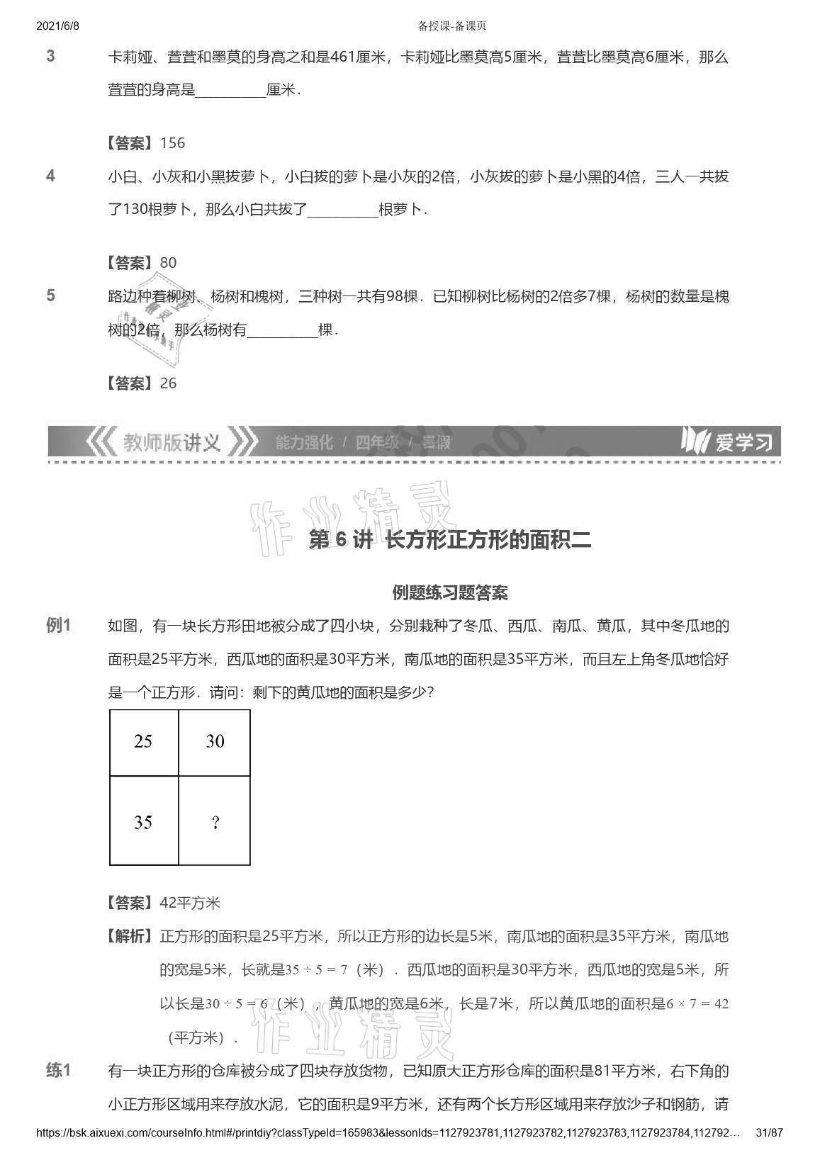 注:目前有些书本章节名称可能整理的还不是很完善,但都是按照顺序排列的,请同学们按照顺序仔细查找。练习册 2021年爱学习数学能力强化体系四年级苏教版首都师范大学出版社 答案主要是用来给同学们做完题方便对答案用的,请勿直接抄袭。