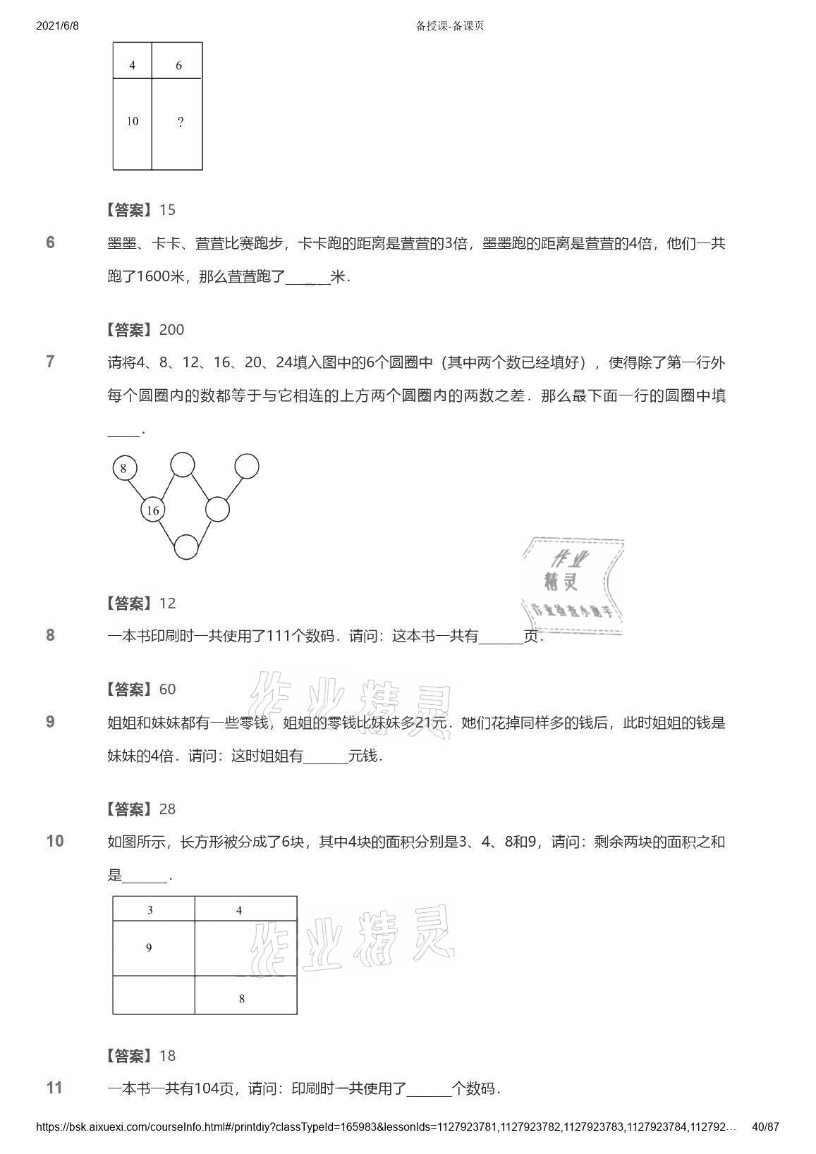 注:目前有些书本章节名称可能整理的还不是很完善,但都是按照顺序排列的,请同学们按照顺序仔细查找。练习册 2021年爱学习数学能力强化体系四年级苏教版首都师范大学出版社 答案主要是用来给同学们做完题方便对答案用的,请勿直接抄袭。