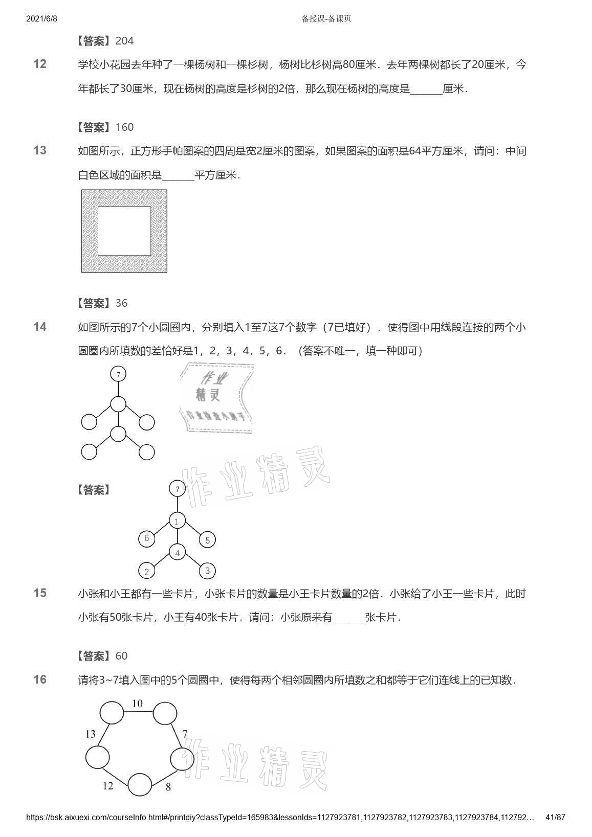注:目前有些书本章节名称可能整理的还不是很完善,但都是按照顺序排列的,请同学们按照顺序仔细查找。练习册 2021年爱学习数学能力强化体系四年级苏教版首都师范大学出版社 答案主要是用来给同学们做完题方便对答案用的,请勿直接抄袭。