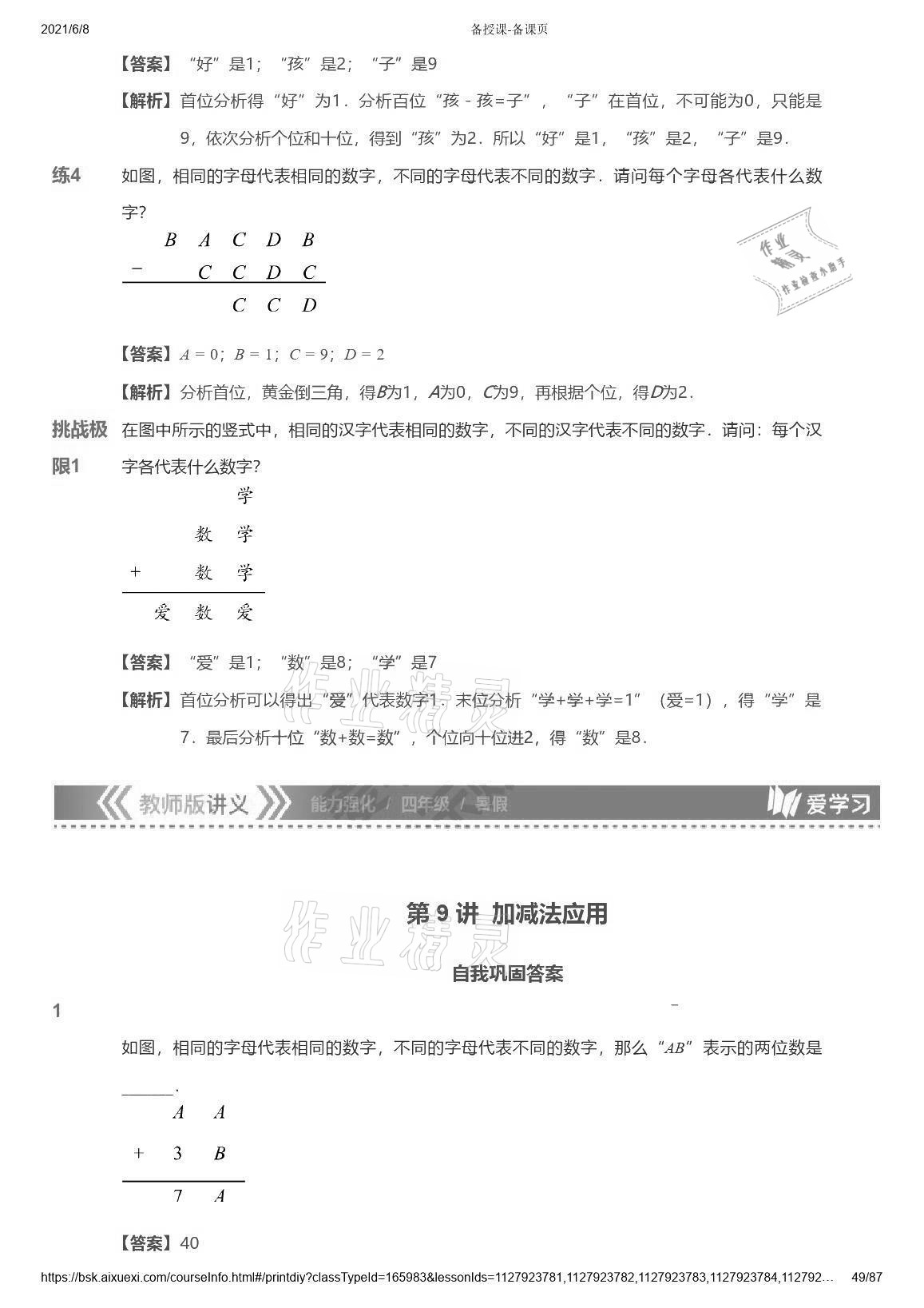 注:目前有些书本章节名称可能整理的还不是很完善,但都是按照顺序排列的,请同学们按照顺序仔细查找。练习册 2021年爱学习数学能力强化体系四年级苏教版首都师范大学出版社 答案主要是用来给同学们做完题方便对答案用的,请勿直接抄袭。