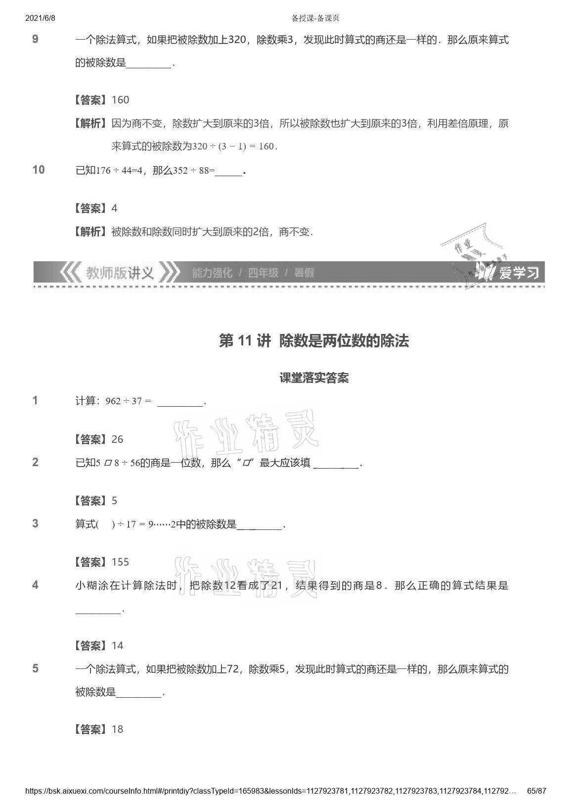 注:目前有些书本章节名称可能整理的还不是很完善,但都是按照顺序排列的,请同学们按照顺序仔细查找。练习册 2021年爱学习数学能力强化体系四年级苏教版首都师范大学出版社 答案主要是用来给同学们做完题方便对答案用的,请勿直接抄袭。