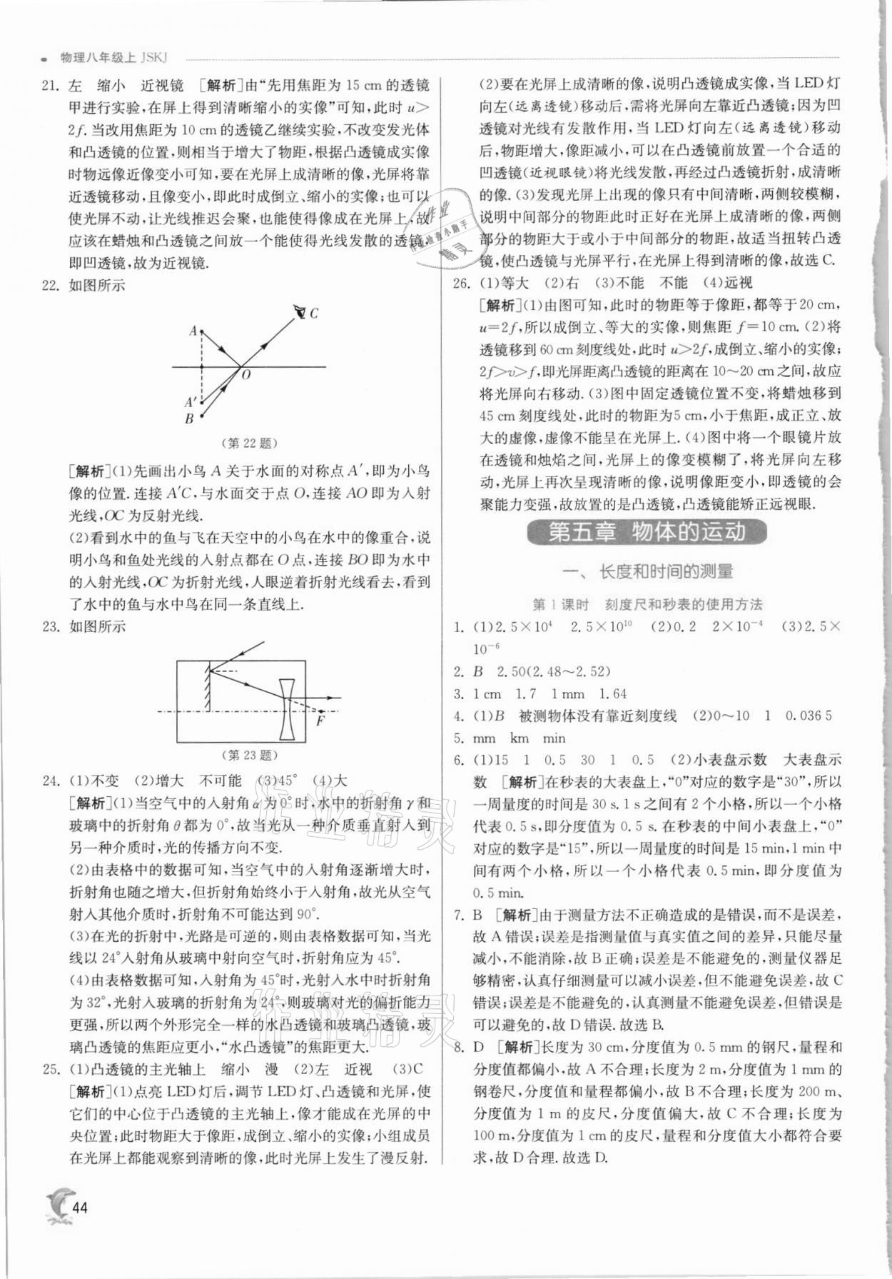 注:目前有些书本章节名称可能整理的还不是很完善,但都是按照顺序排列的,请同学们按照顺序仔细查找。练习册 2021年实验班提优训练八年级物理上册苏科版江苏专版 答案主要是用来给同学们做完题方便对答案用的,请勿直接抄袭。