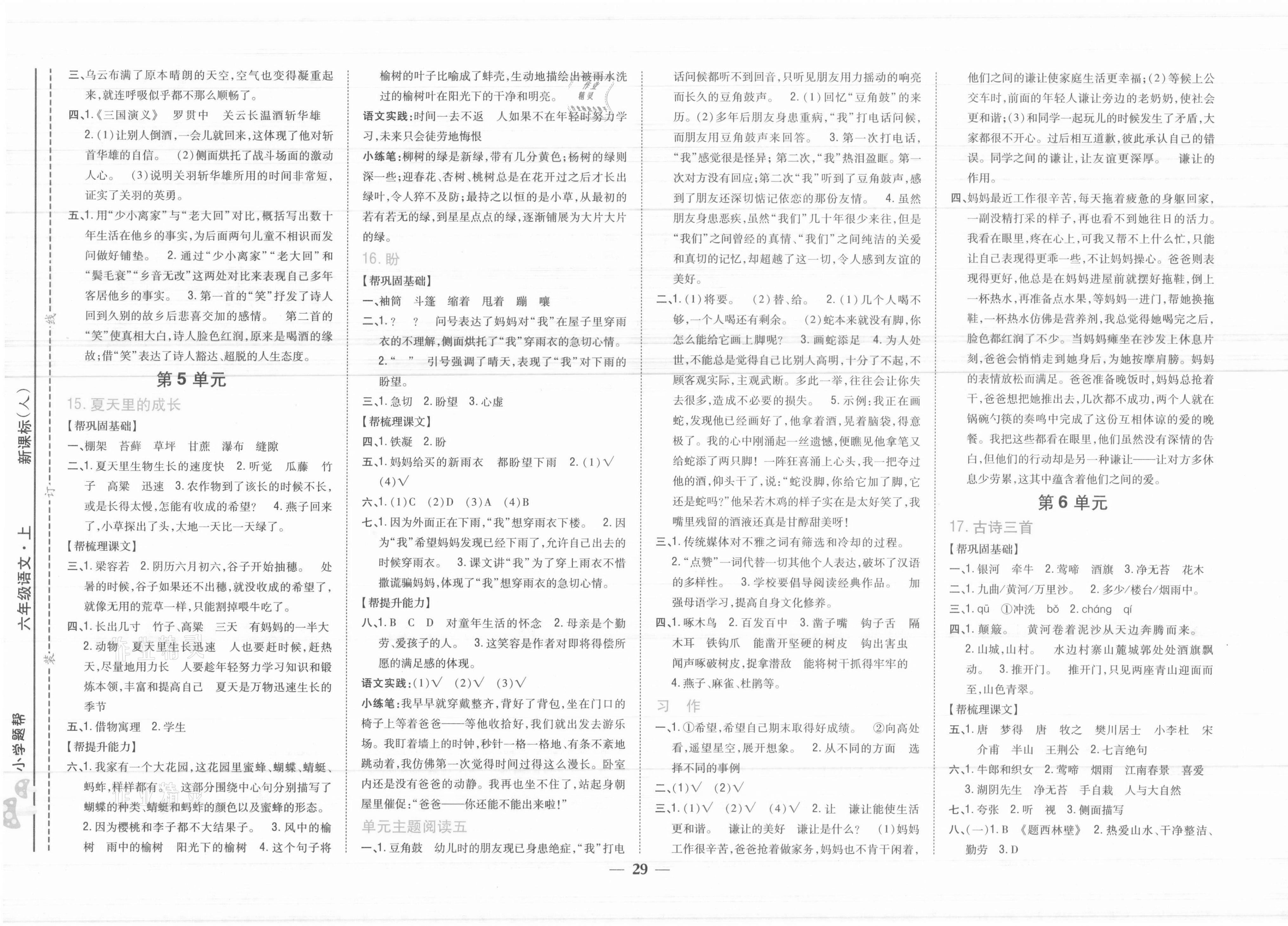 2021年小学题帮六年级语文上册人教版
