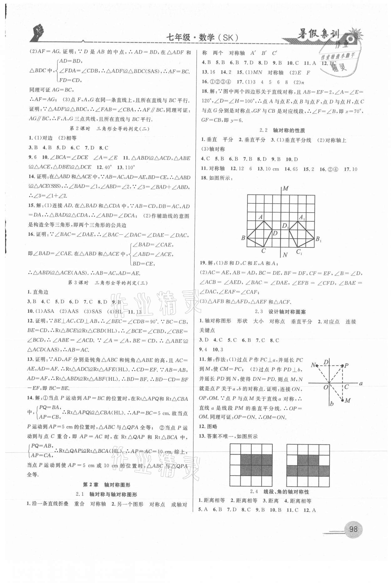 2021年暑假集训七年级数学苏科版合肥工业大学出版社