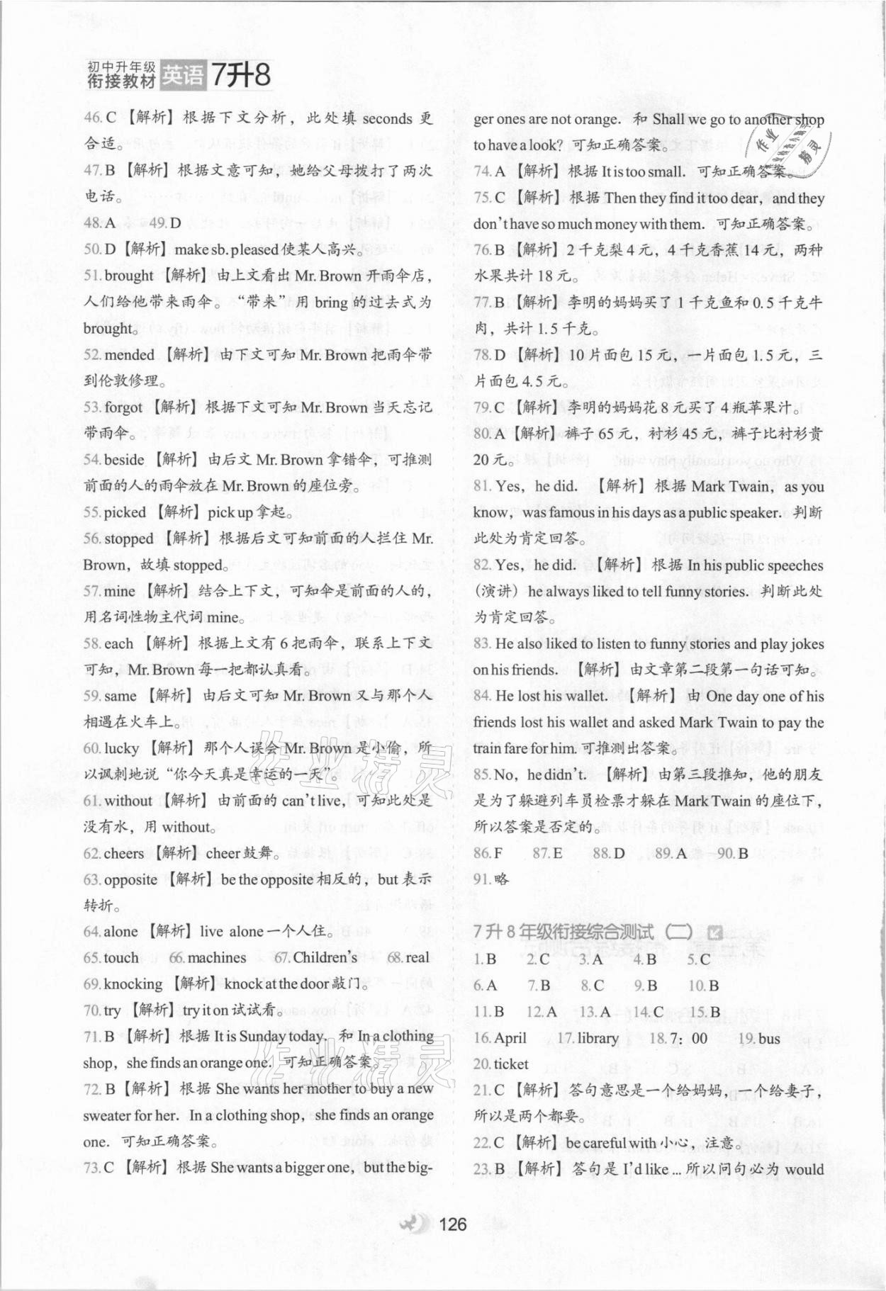 注:目前有些书本章节名称可能整理的还不是很完善,但都是按照顺序排列的,请同学们按照顺序仔细查找。练习册 2021年鹰派教辅初中升年级衔接教材7升8年级英语河北教育出版社 答案主要是用来给同学们做完题方便对答案用的,请勿直接抄袭。