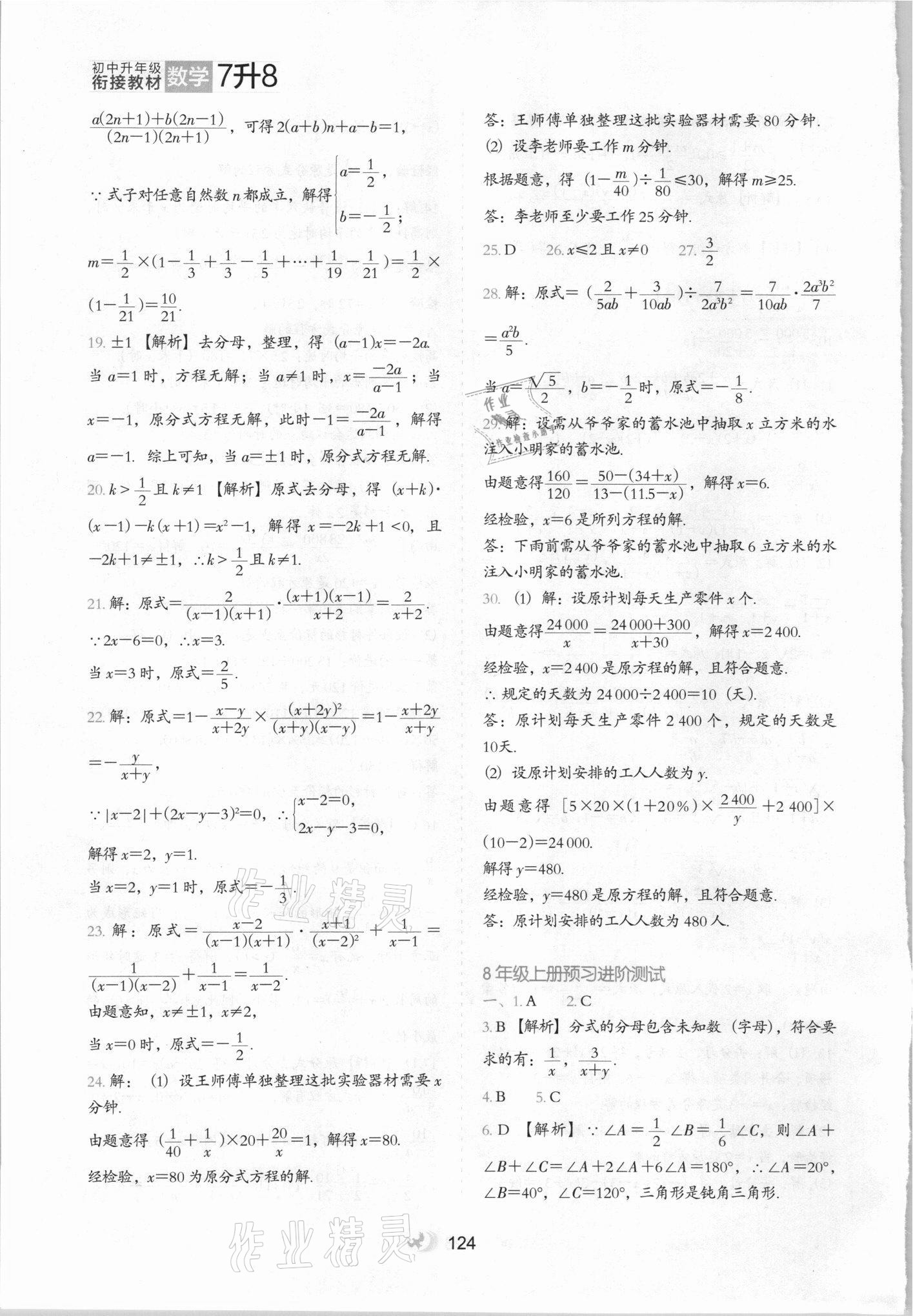 注:目前有些书本章节名称可能整理的还不是很完善,但都是按照顺序排列的,请同学们按照顺序仔细查找。练习册 2021年鹰派教辅初中升年级衔接教材7升8年级数学河北教育出版社 答案主要是用来给同学们做完题方便对答案用的,请勿直接抄袭。