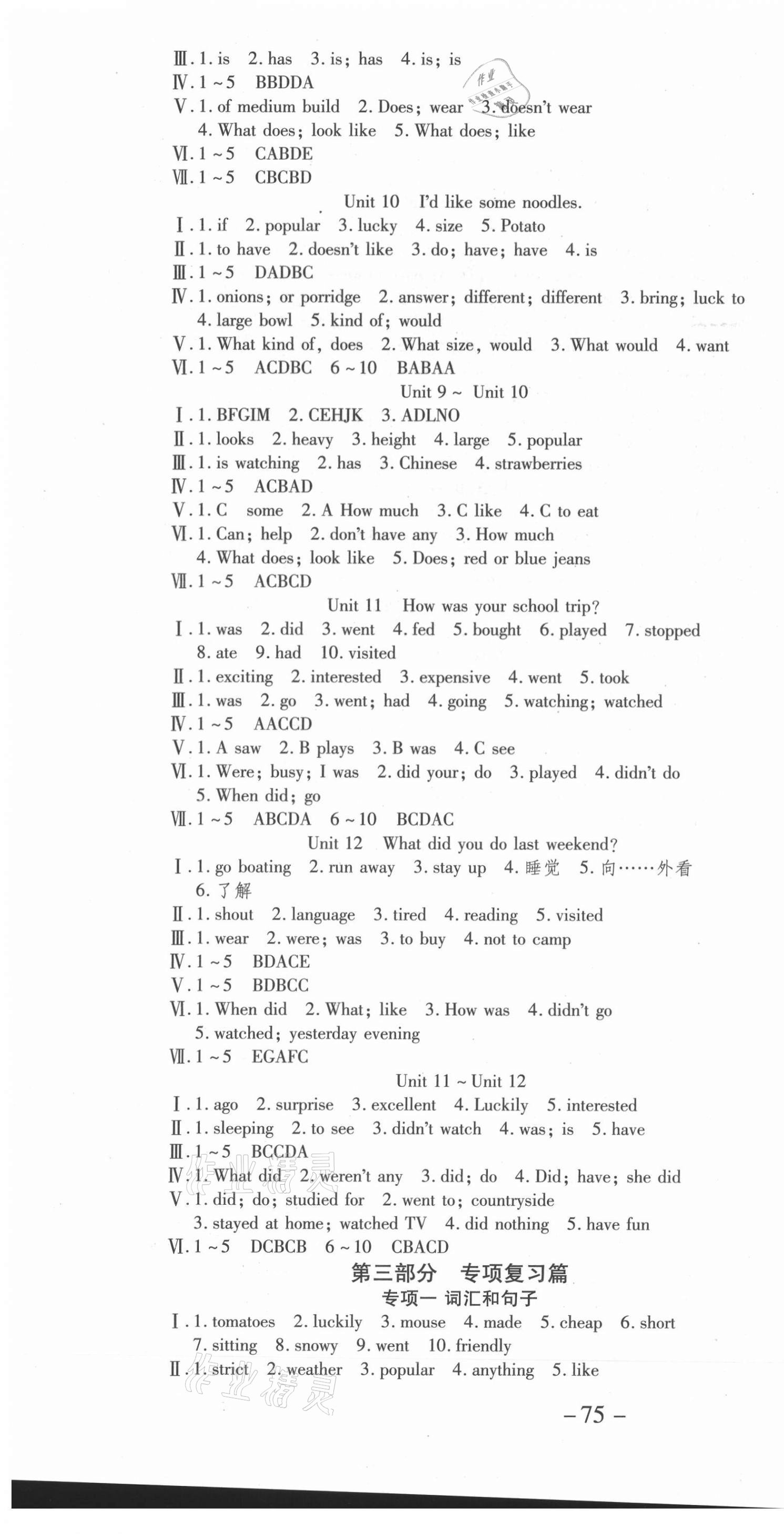 注:目前有些书本章节名称可能整理的还不是很完善,但都是按照顺序排列的,请同学们按照顺序仔细查找。练习册 2021年智趣暑假温故知新学年总复习七年级英语人教版 答案主要是用来给同学们做完题方便对答案用的,请勿直接抄袭。