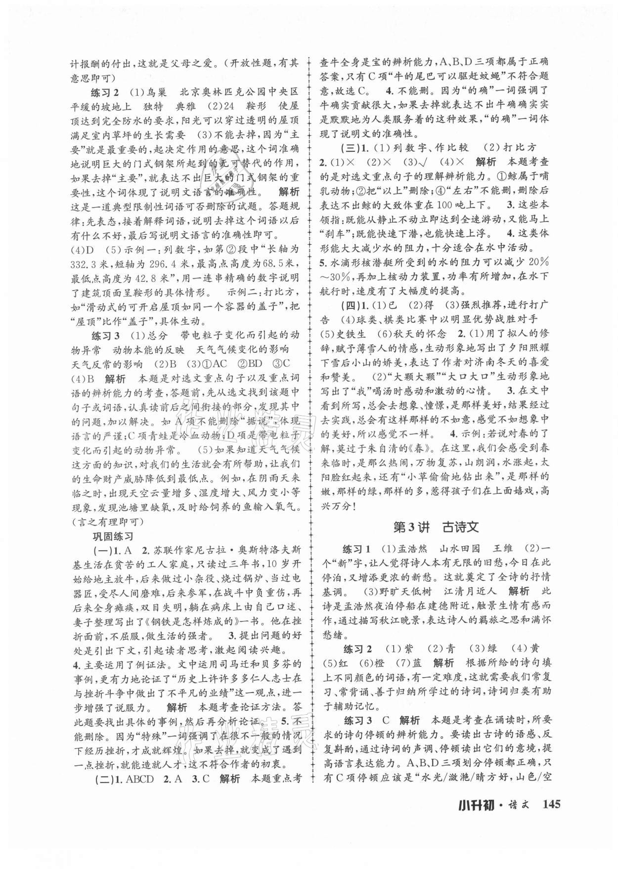 注:目前有些书本章节名称可能整理的还不是很完善,但都是按照顺序排列的,请同学们按照顺序仔细查找。练习册 2021年孟建平暑假培训教材小升初语文人教版浙江工商大学出版社 答案主要是用来给同学们做完题方便对答案用的,请勿直接抄袭。