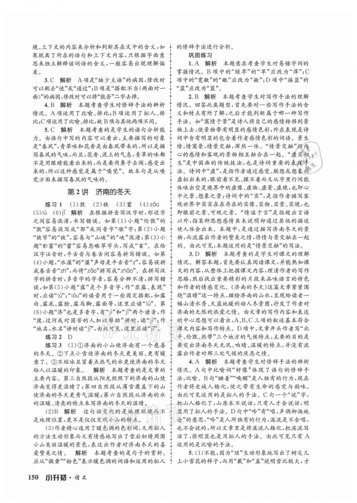 注:目前有些书本章节名称可能整理的还不是很完善,但都是按照顺序排列的,请同学们按照顺序仔细查找。练习册 2021年孟建平暑假培训教材小升初语文人教版浙江工商大学出版社 答案主要是用来给同学们做完题方便对答案用的,请勿直接抄袭。