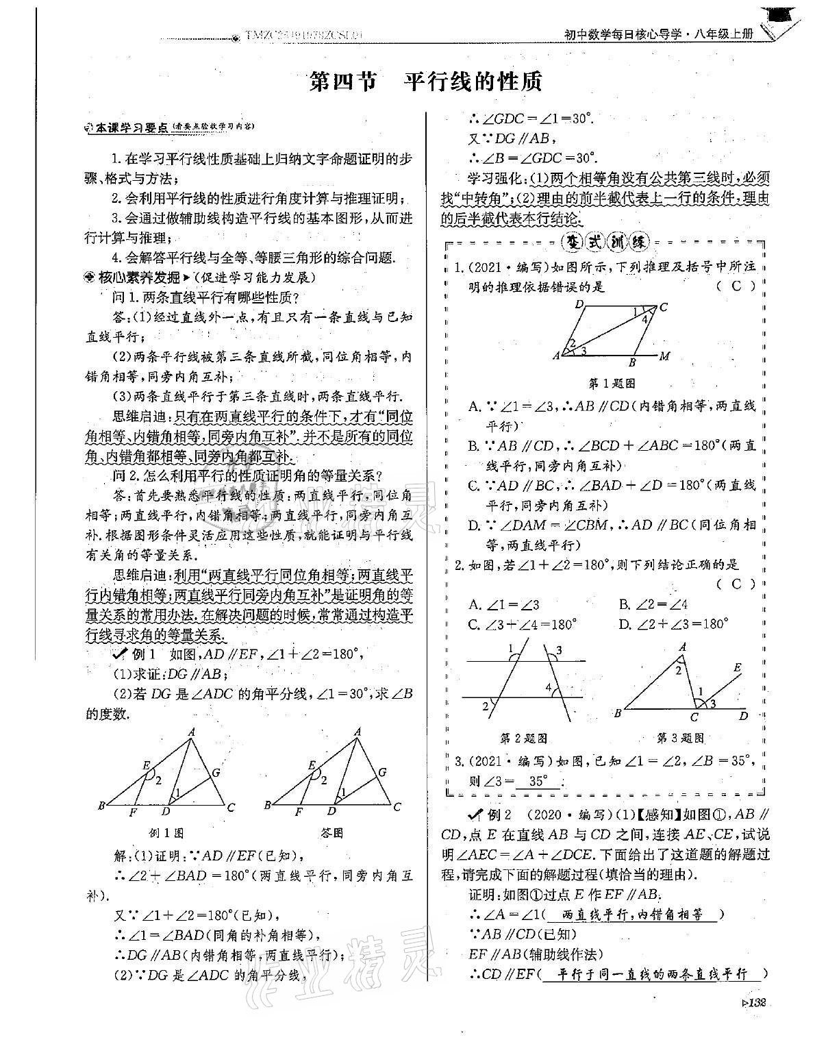 注:目前有些书本章节名称可能整理的还不是很完善,但都是按照顺序排列的,请同学们按照顺序仔细查找。练习册 2021年初中数学每日核心导学八年级上册北师大版 答案主要是用来给同学们做完题方便对答案用的,请勿直接抄袭。