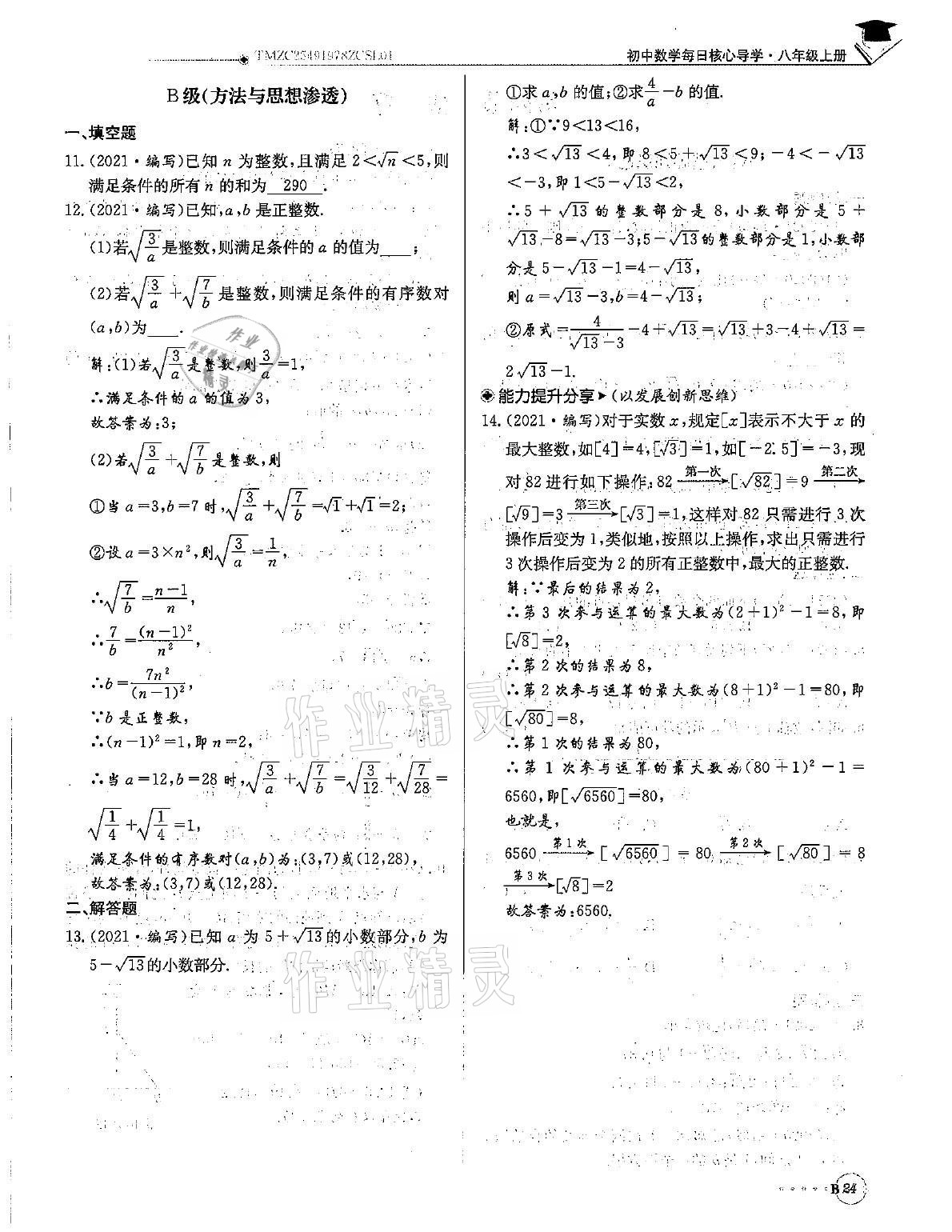 注:目前有些书本章节名称可能整理的还不是很完善,但都是按照顺序排列的,请同学们按照顺序仔细查找。练习册 2021年初中数学每日核心导学八年级上册北师大版 答案主要是用来给同学们做完题方便对答案用的,请勿直接抄袭。