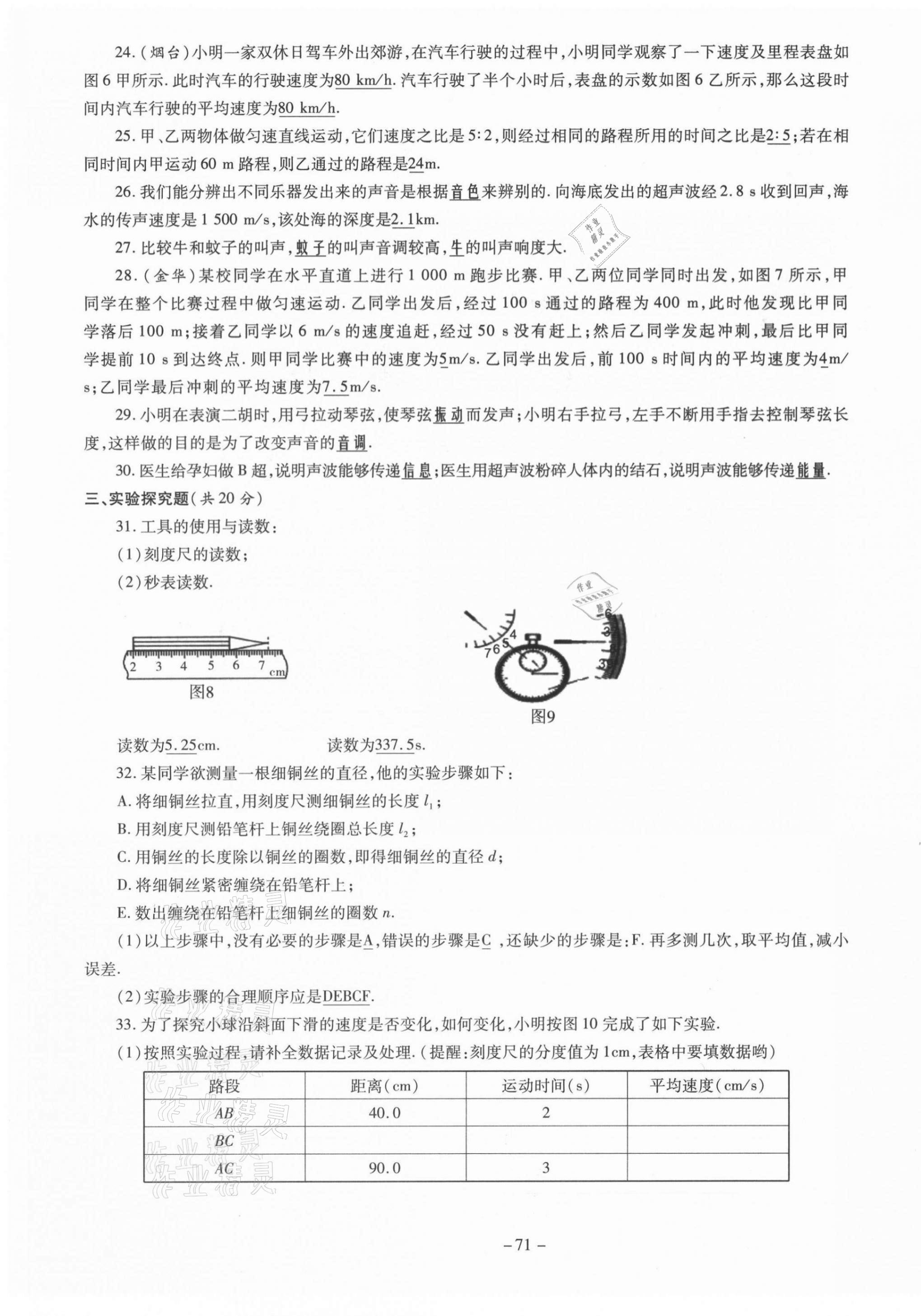 注:目前有些书本章节名称可能整理的还不是很完善,但都是按照顺序排列的,请同学们按照顺序仔细查找。练习册 2021年经典密卷八年级物理上册人教版 答案主要是用来给同学们做完题方便对答案用的,请勿直接抄袭。