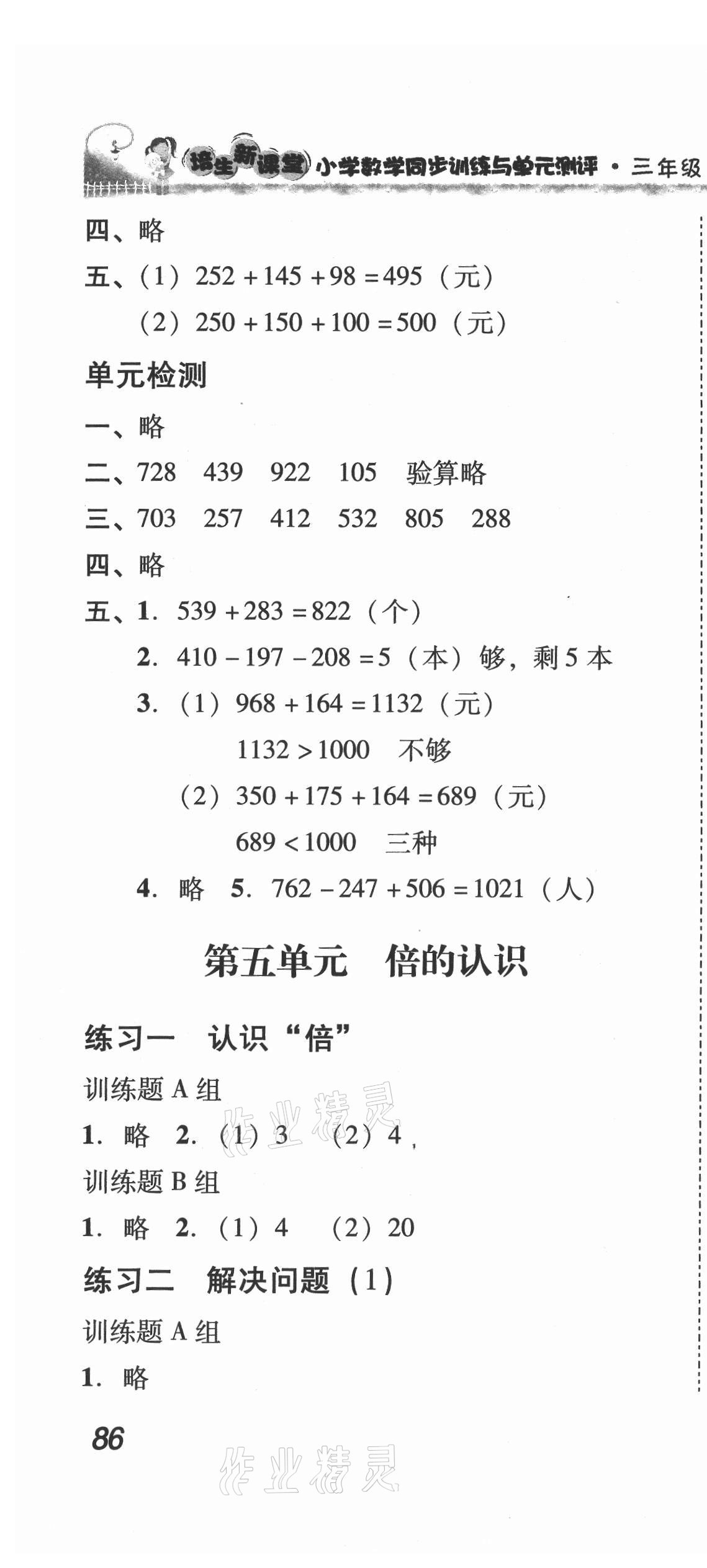 注:目前有些书本章节名称可能整理的还不是很完善,但都是按照顺序排列的,请同学们按照顺序仔细查找。练习册 2021年培生新课堂同步训练与单元测评三年级数学上册人教版 答案主要是用来给同学们做完题方便对答案用的,请勿直接抄袭。