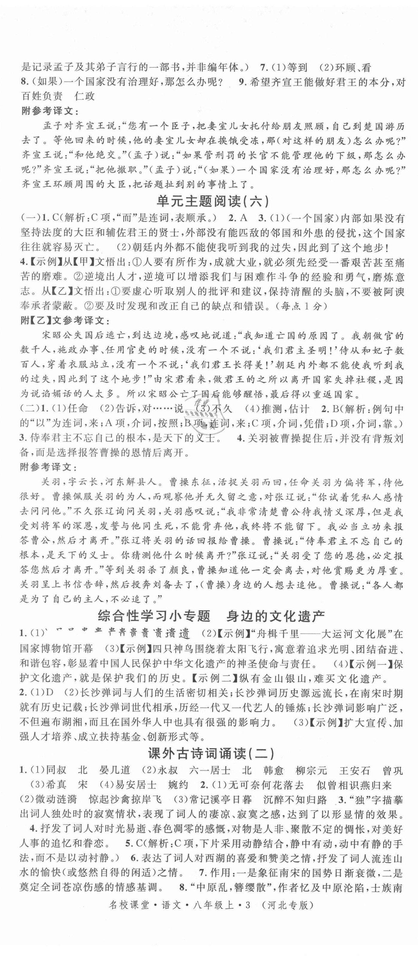 注:目前有些书本章节名称可能整理的还不是很完善,但都是按照顺序排列的,请同学们按照顺序仔细查找。练习册 2021年名校课堂八年级语文上册人教版河北专版 答案主要是用来给同学们做完题方便对答案用的,请勿直接抄袭。