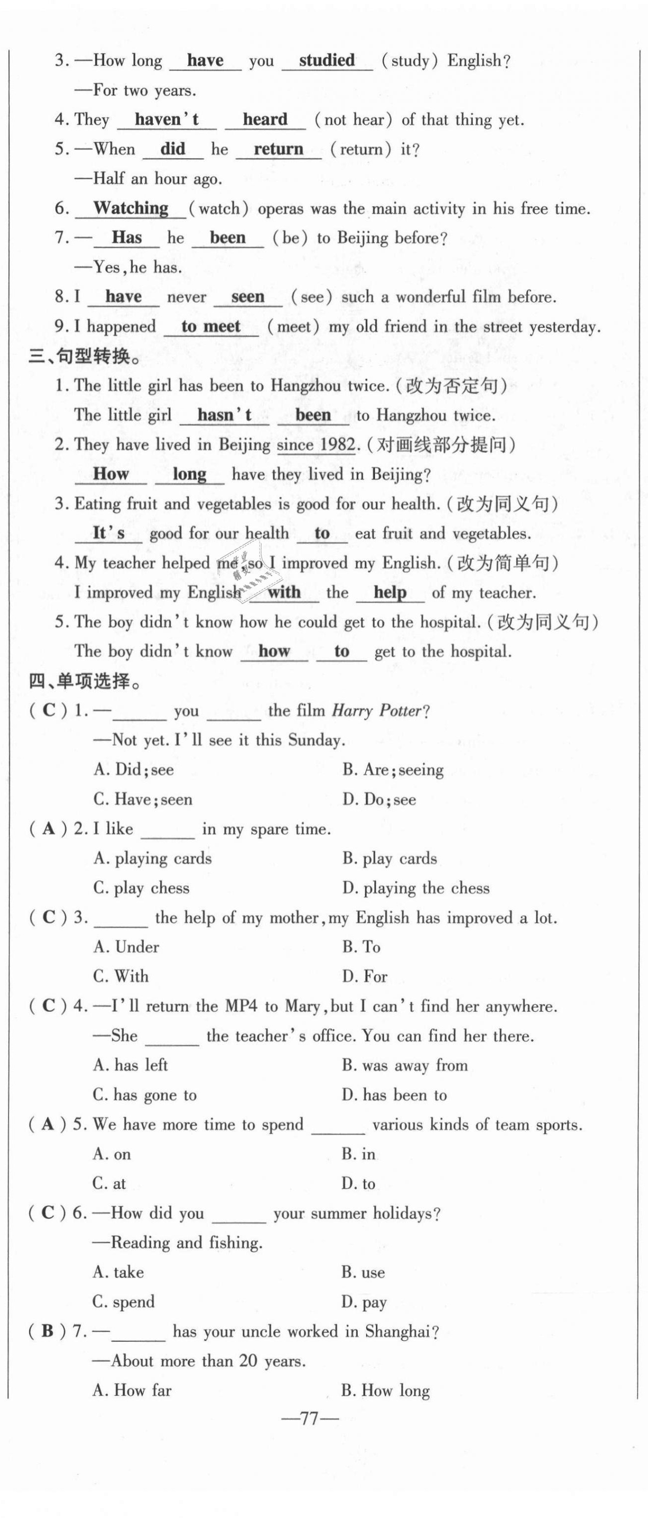 - 参考答案第77页