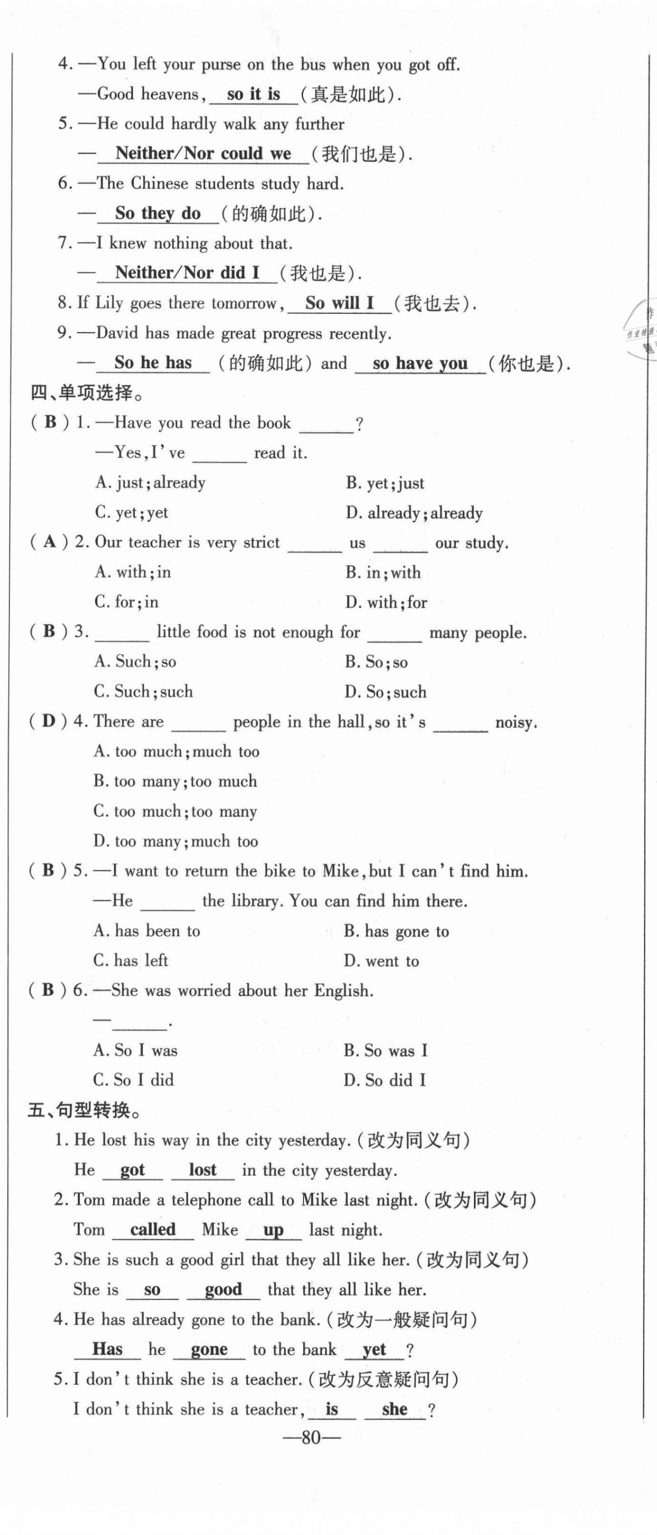 - 参考答案第80页