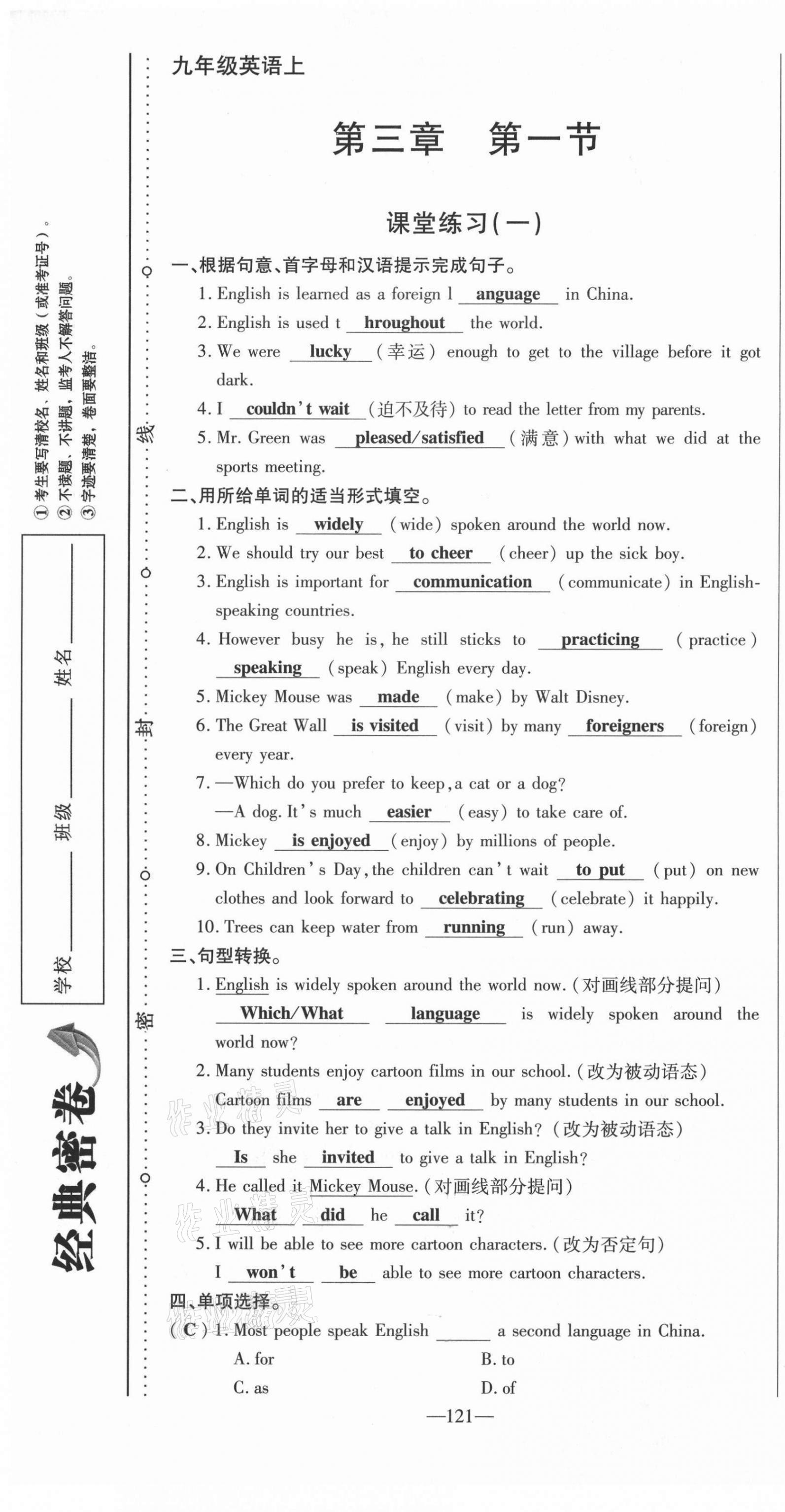 注:目前有些书本章节名称可能整理的还不是很完善,但都是按照顺序排列的,请同学们按照顺序仔细查找。练习册 2021年经典密卷九年级英语上册仁爱版 答案主要是用来给同学们做完题方便对答案用的,请勿直接抄袭。