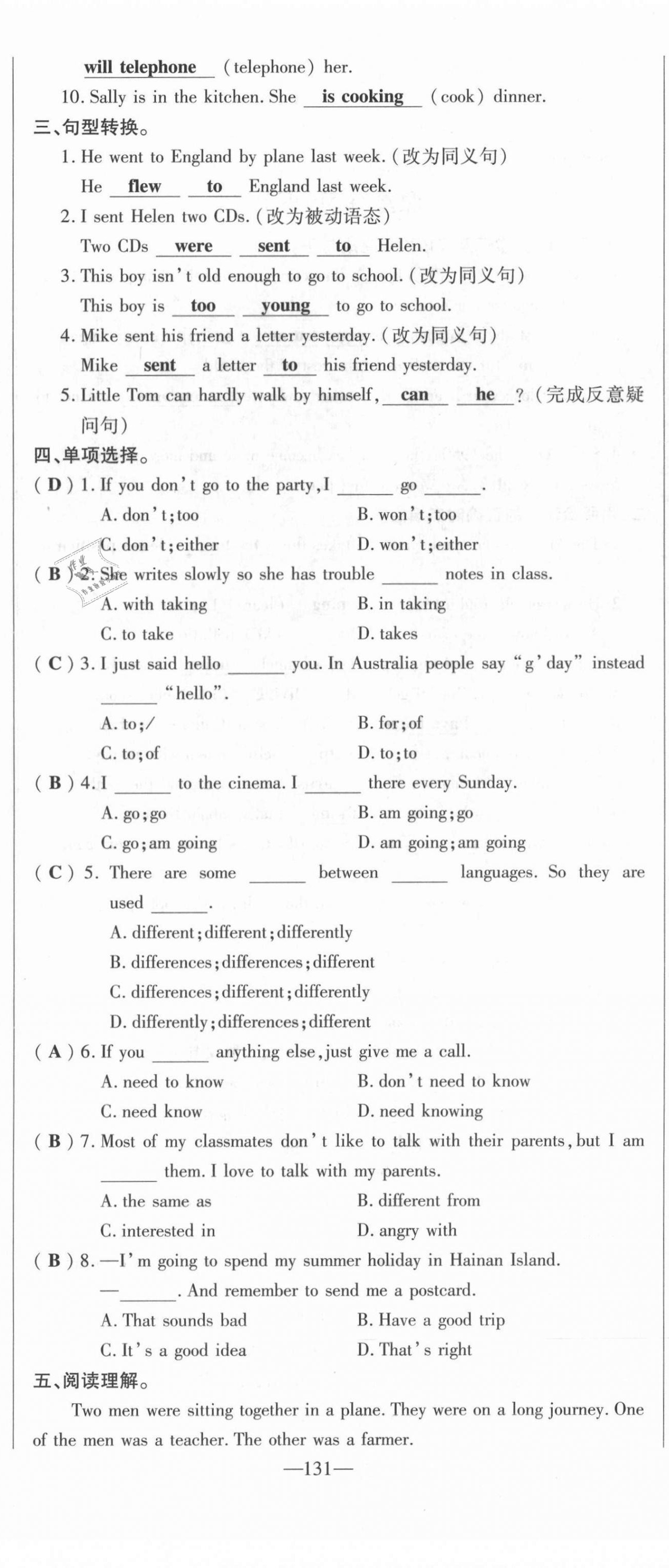 注:目前有些书本章节名称可能整理的还不是很完善,但都是按照顺序排列的,请同学们按照顺序仔细查找。练习册 2021年经典密卷九年级英语上册仁爱版 答案主要是用来给同学们做完题方便对答案用的,请勿直接抄袭。