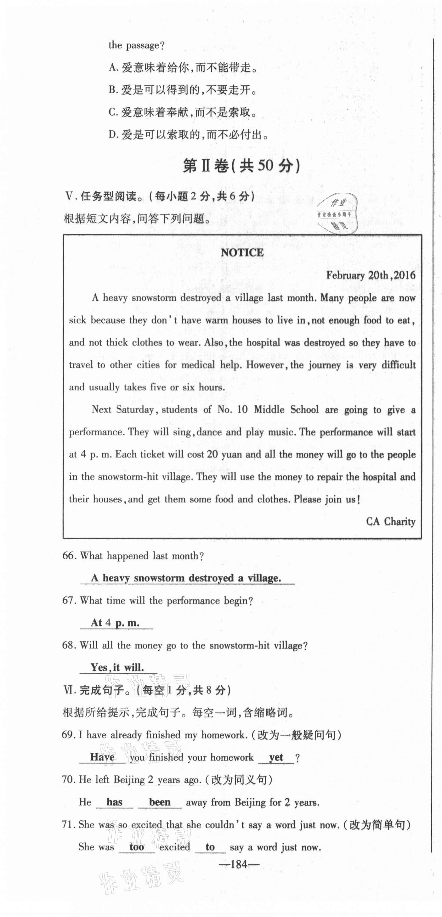 注:目前有些书本章节名称可能整理的还不是很完善,但都是按照顺序排列的,请同学们按照顺序仔细查找。练习册 2021年经典密卷九年级英语上册仁爱版 答案主要是用来给同学们做完题方便对答案用的,请勿直接抄袭。