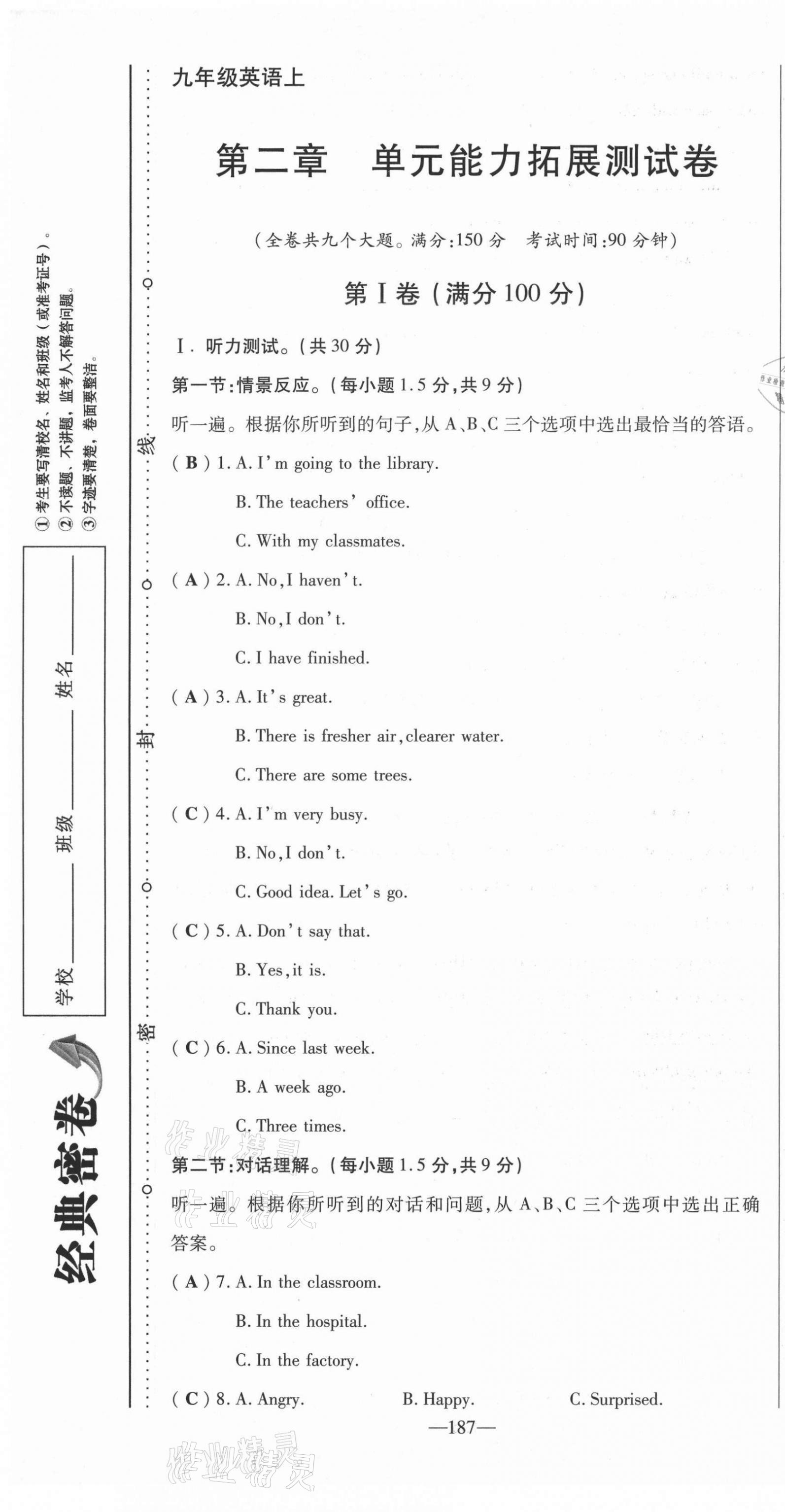 注:目前有些书本章节名称可能整理的还不是很完善,但都是按照顺序排列的,请同学们按照顺序仔细查找。练习册 2021年经典密卷九年级英语上册仁爱版 答案主要是用来给同学们做完题方便对答案用的,请勿直接抄袭。