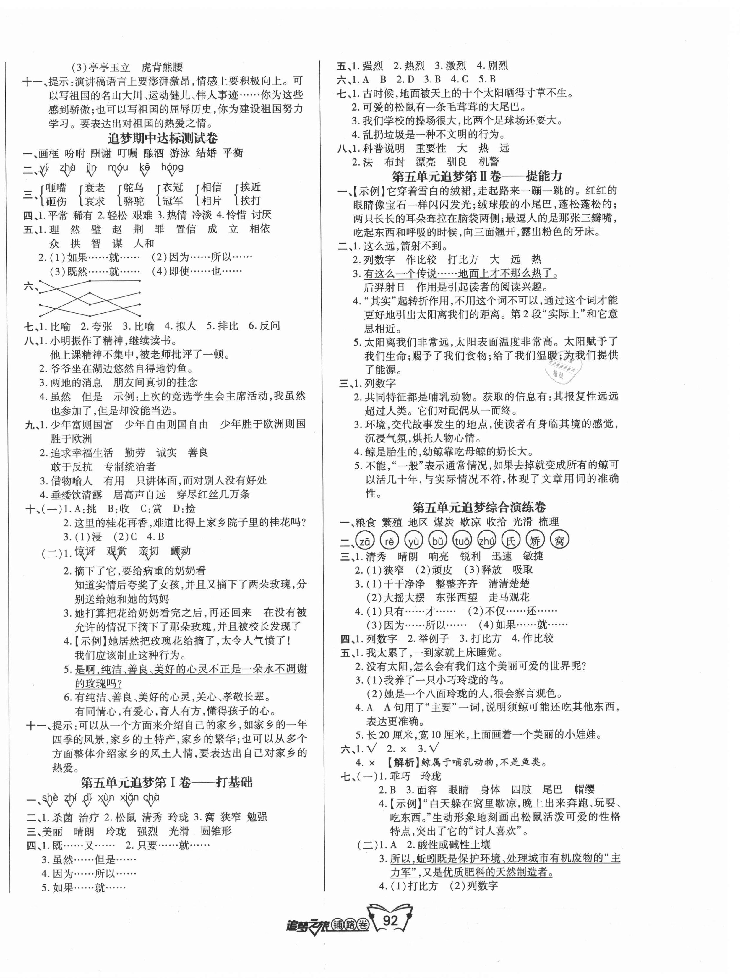 注:目前有些书本章节名称可能整理的还不是很完善,但都是按照顺序排列的,请同学们按照顺序仔细查找。练习册 2021年追梦之旅铺路卷五年级语文上册人教版 答案主要是用来给同学们做完题方便对答案用的,请勿直接抄袭。