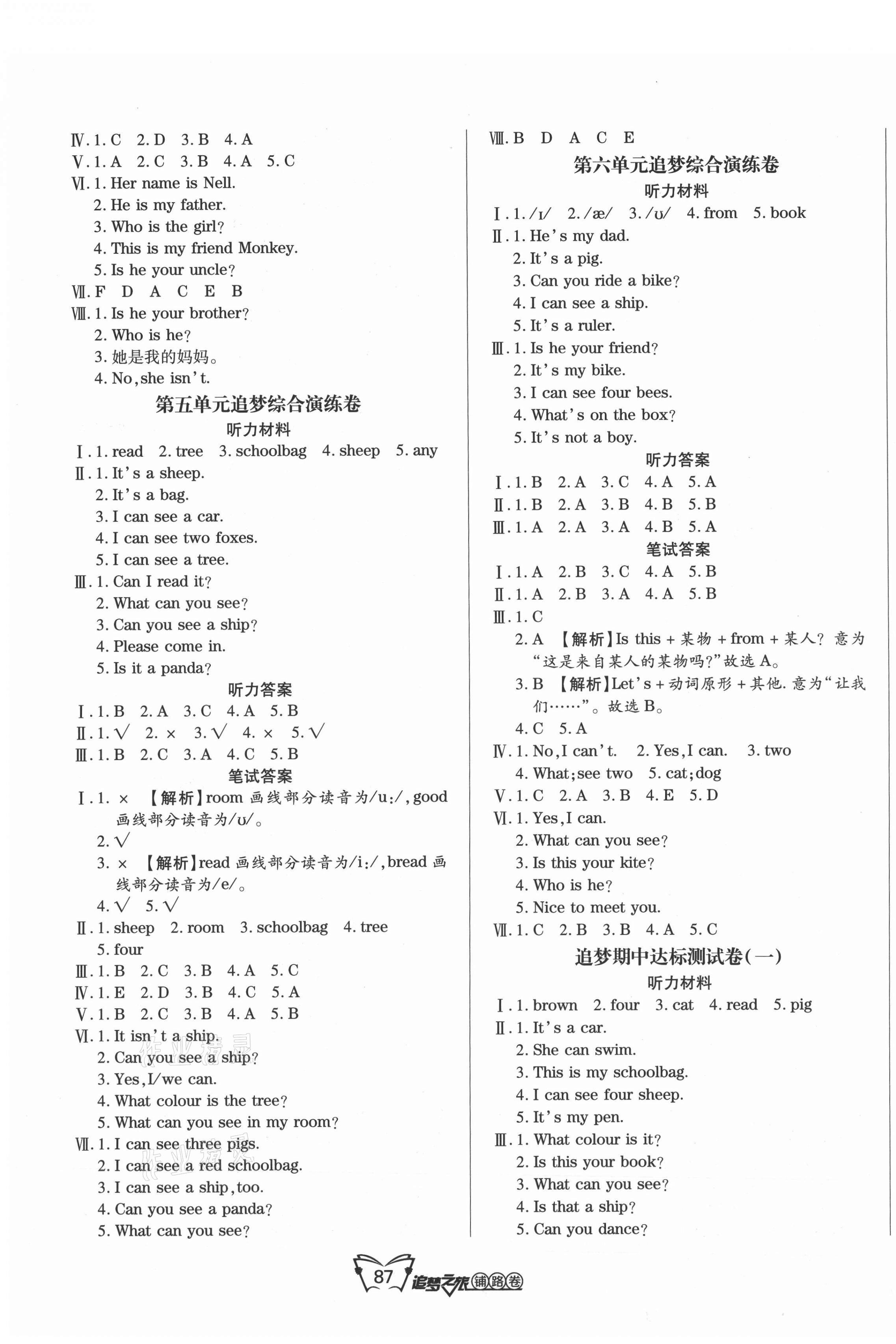2021年追梦之旅铺路卷四年级英语上册科普版