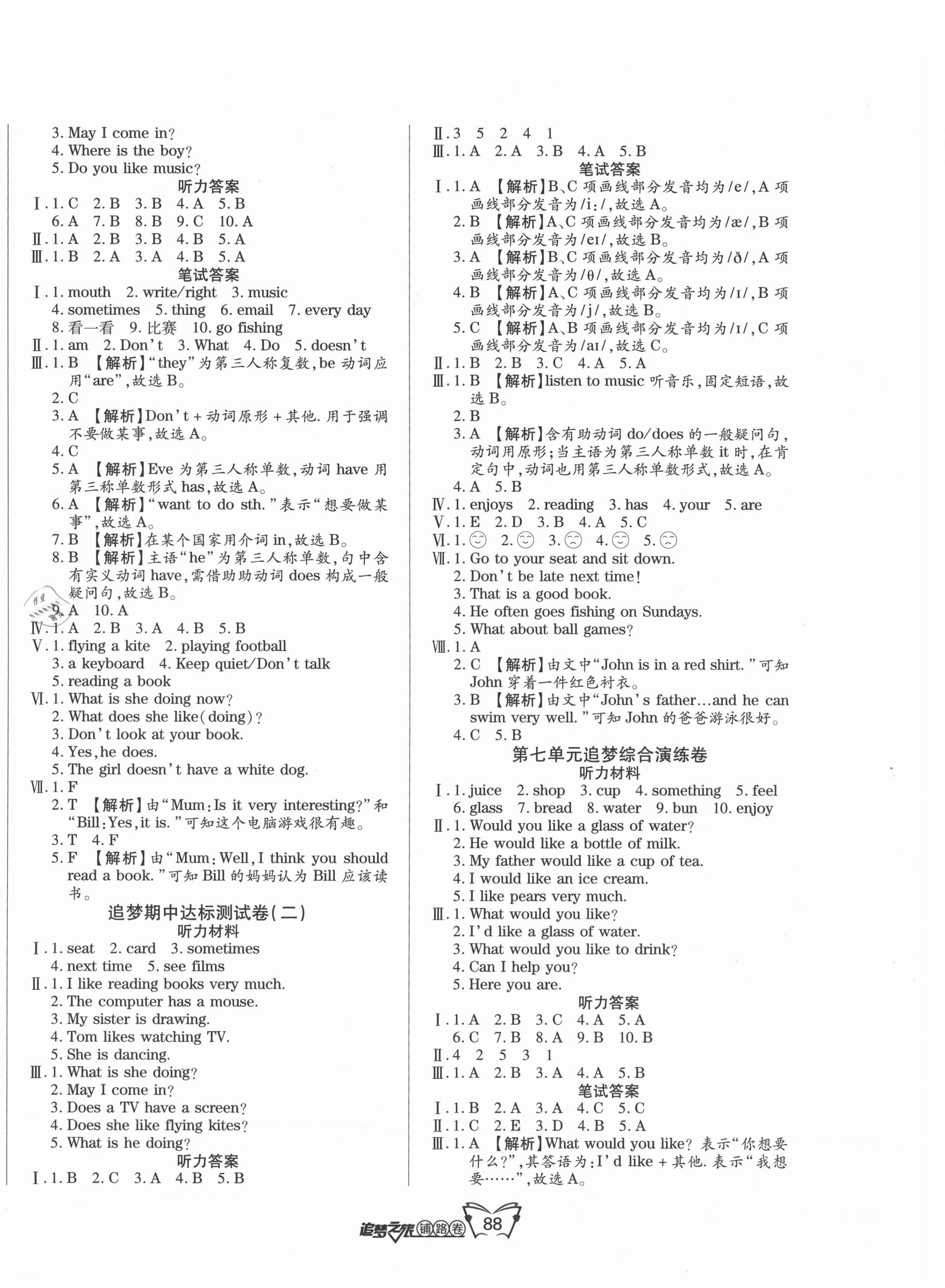 注:目前有些书本章节名称可能整理的还不是很完善,但都是按照顺序排列的,请同学们按照顺序仔细查找。练习册 2021年追梦之旅铺路卷五年级英语上册科普版 答案主要是用来给同学们做完题方便对答案用的,请勿直接抄袭。