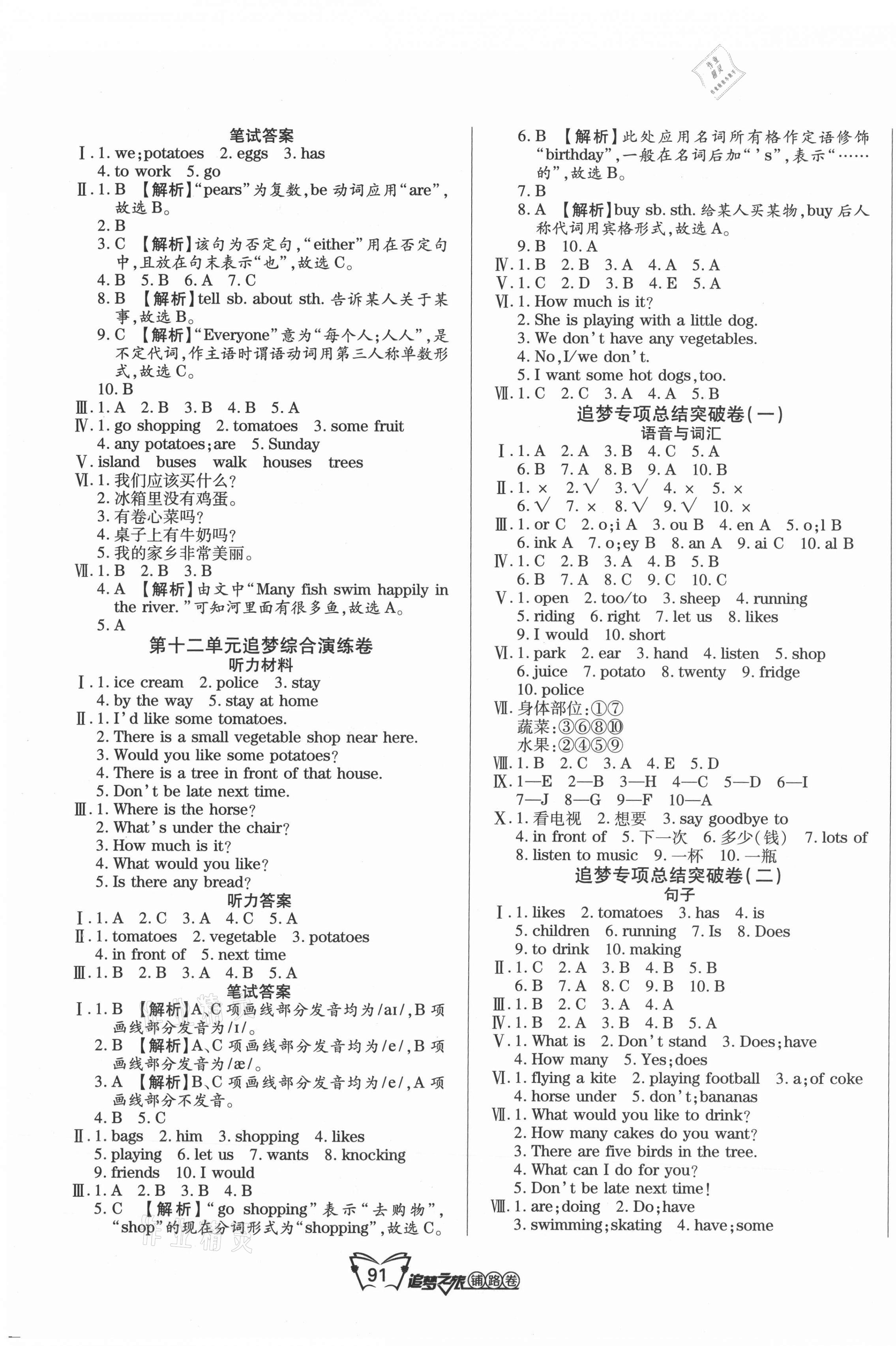 2021年追梦之旅铺路卷五年级英语上册科普版