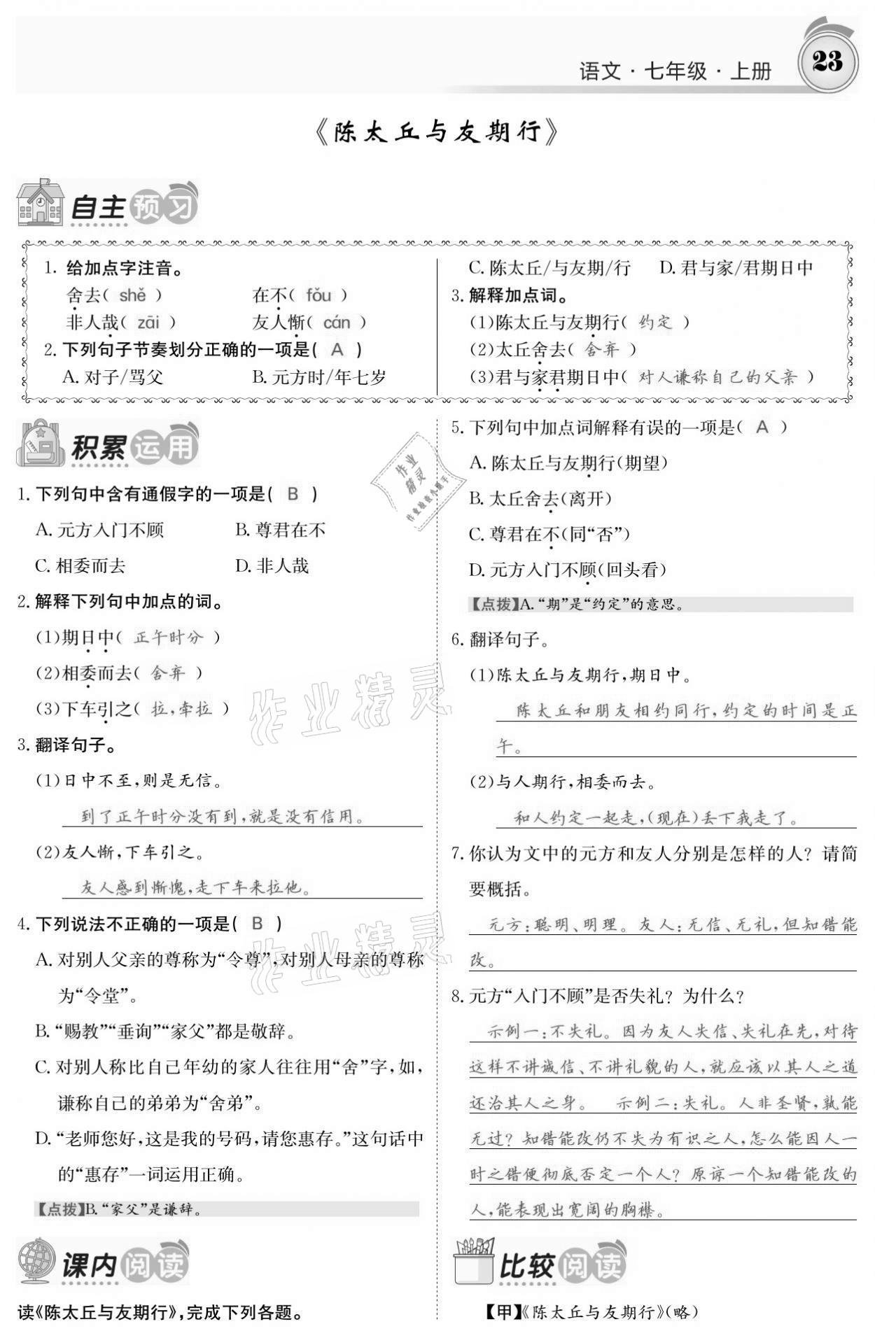 注:目前有些书本章节名称可能整理的还不是很完善,但都是按照顺序排列的,请同学们按照顺序仔细查找。练习册 2021年名校课堂内外七年级语文上册人教版黔东南专版 答案主要是用来给同学们做完题方便对答案用的,请勿直接抄袭。