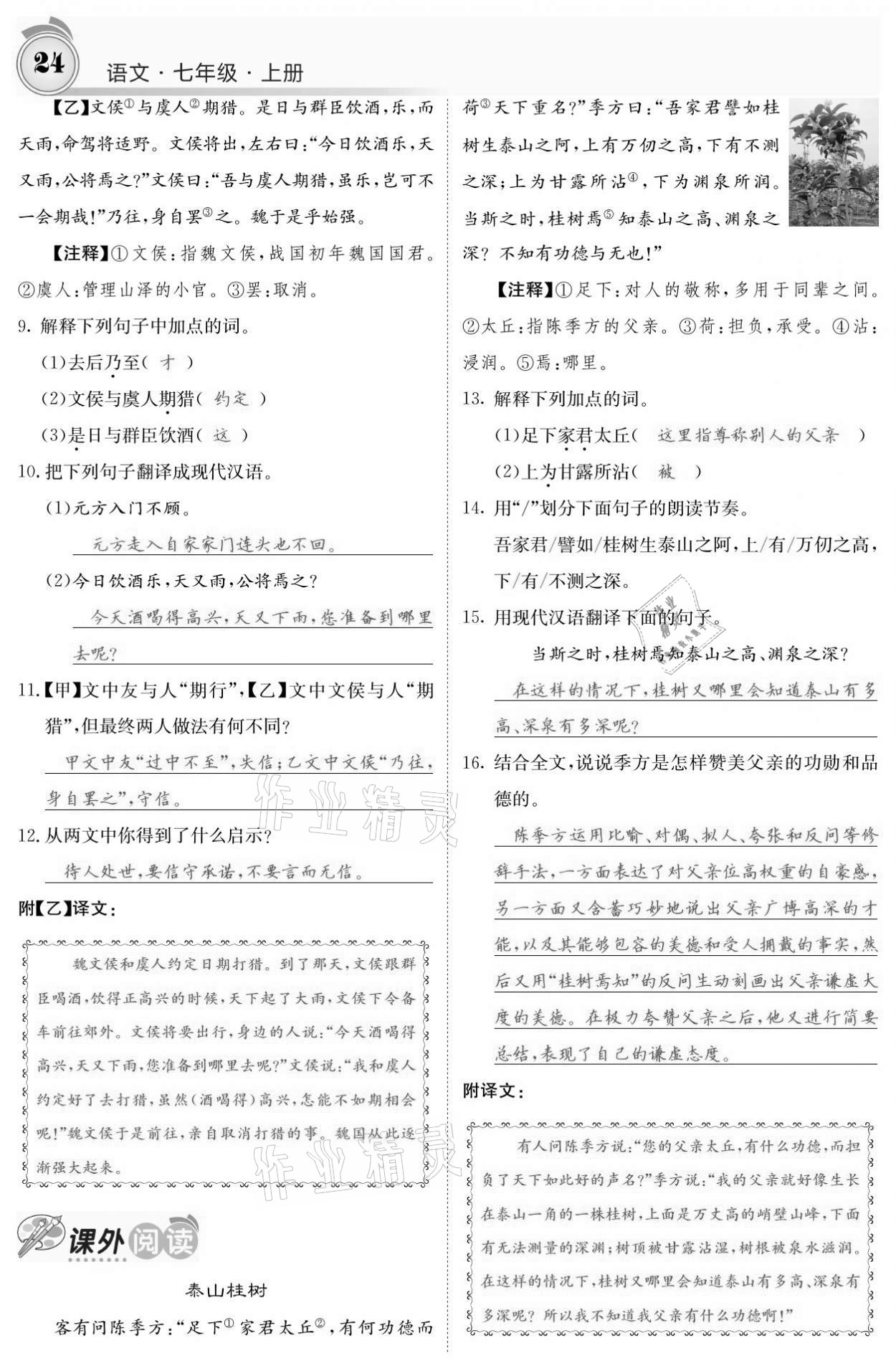 2021年名校课堂内外七年级语文上册人教版黔东南专版