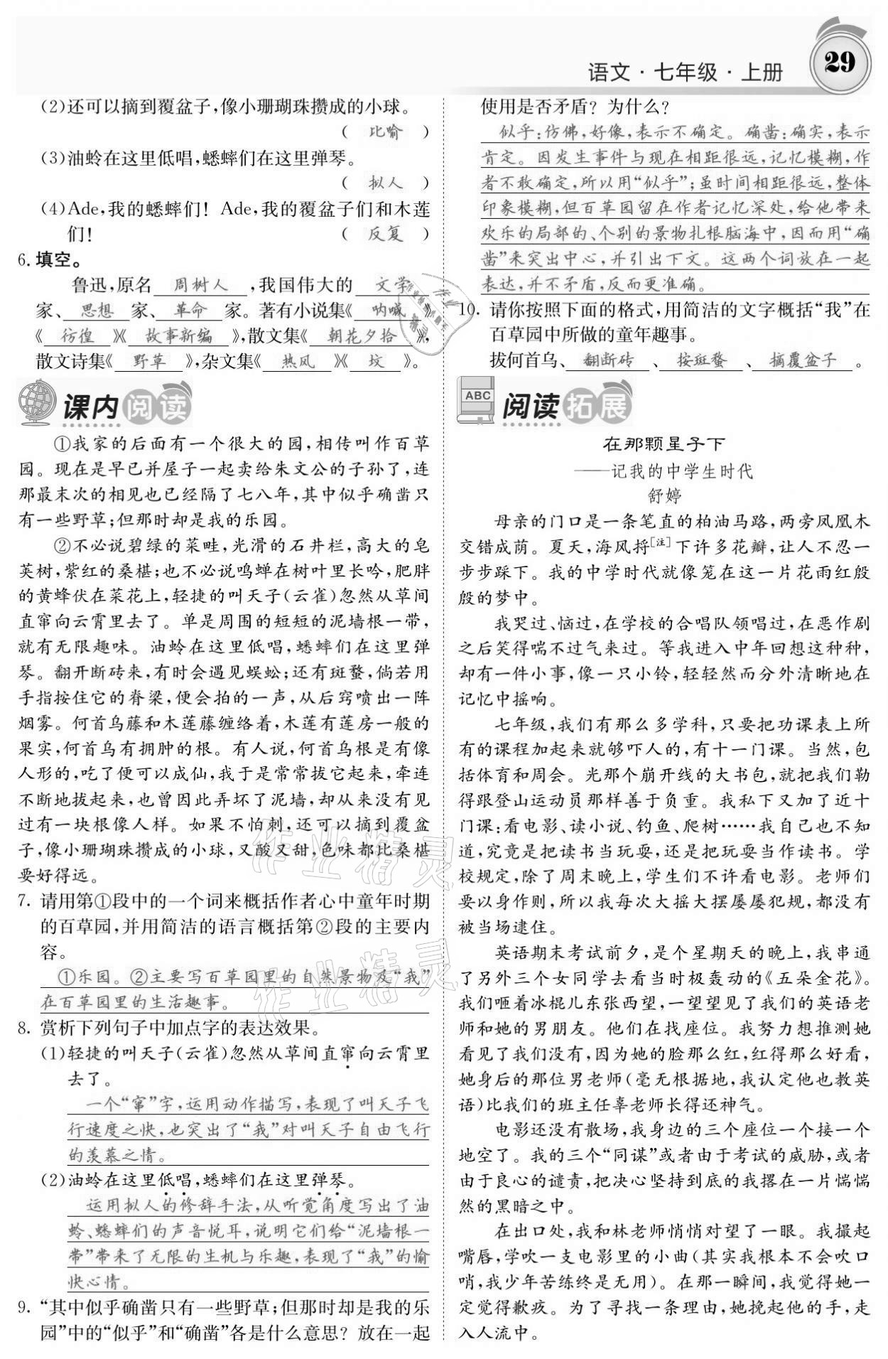 2021年名校课堂内外七年级语文上册人教版黔东南专版