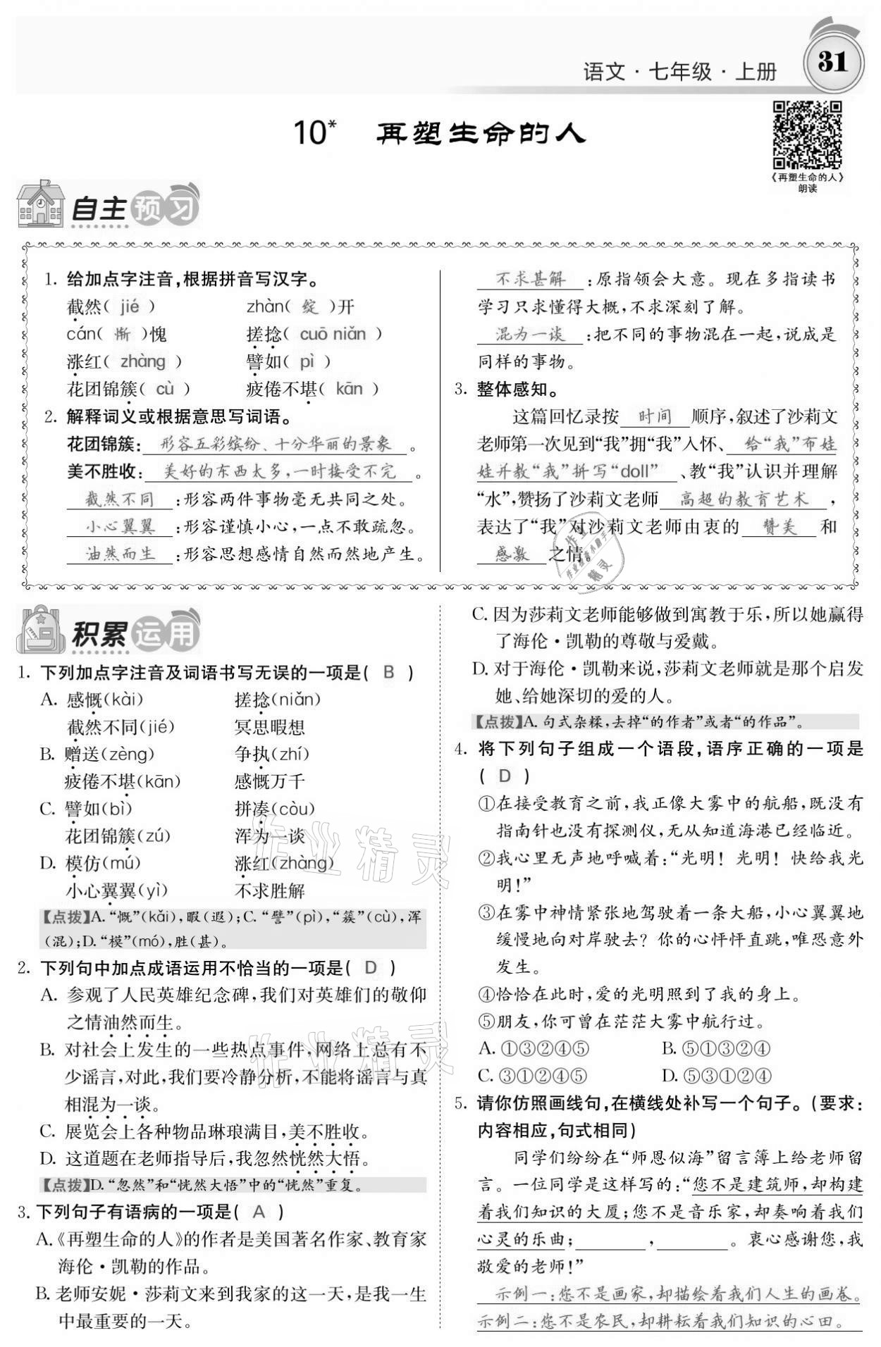 注:目前有些书本章节名称可能整理的还不是很完善,但都是按照顺序排列的,请同学们按照顺序仔细查找。练习册 2021年名校课堂内外七年级语文上册人教版黔东南专版 答案主要是用来给同学们做完题方便对答案用的,请勿直接抄袭。