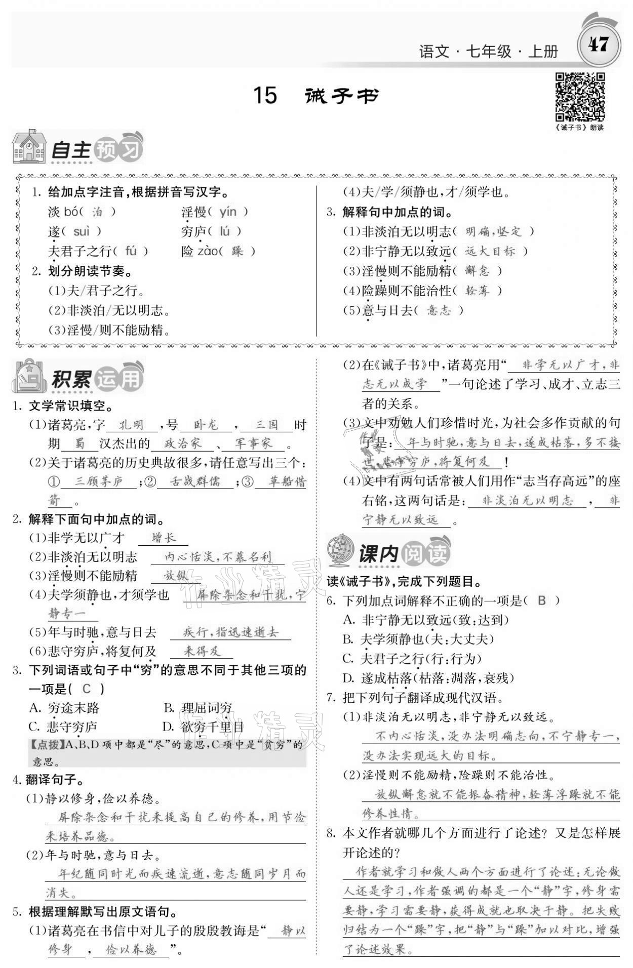 注:目前有些书本章节名称可能整理的还不是很完善,但都是按照顺序排列的,请同学们按照顺序仔细查找。练习册 2021年名校课堂内外七年级语文上册人教版黔东南专版 答案主要是用来给同学们做完题方便对答案用的,请勿直接抄袭。